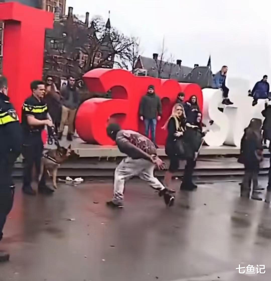 外国街头,一个黑命贵不知道怎么回事,一个劲地挑衅警犬。