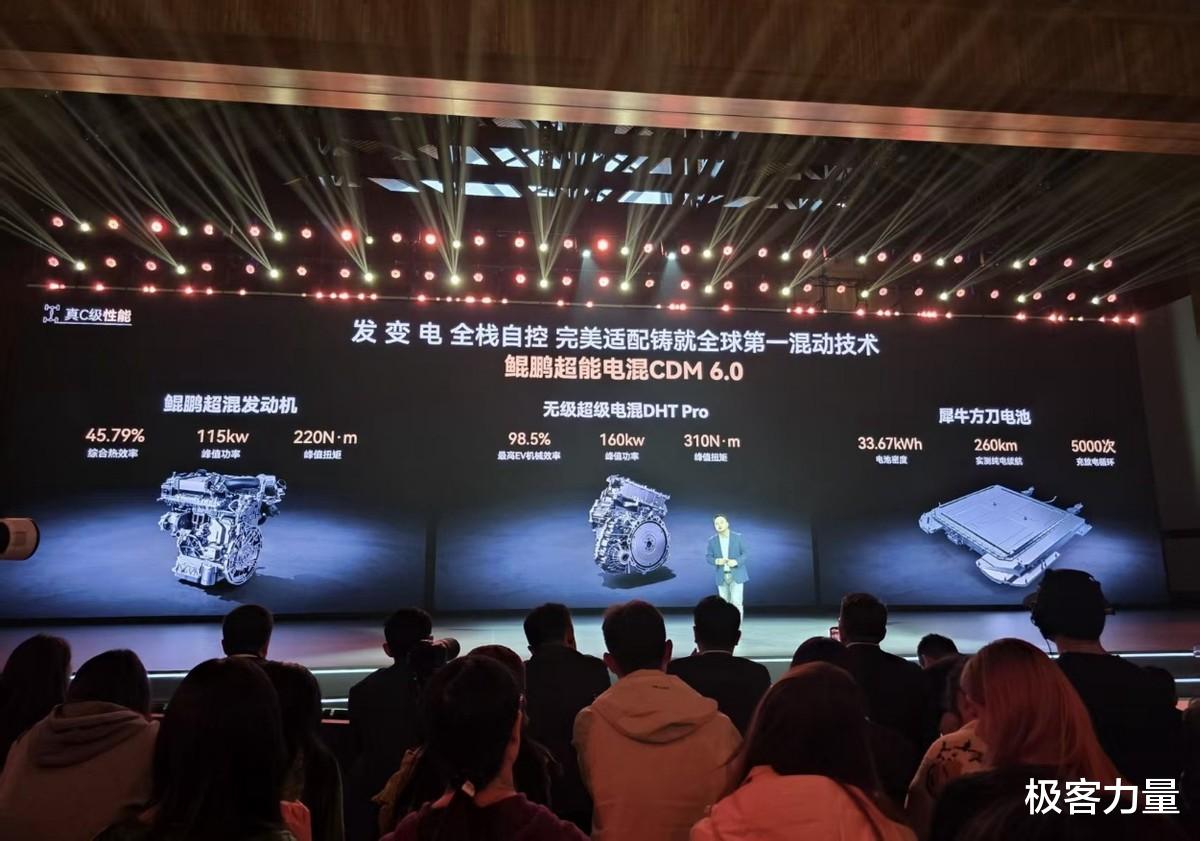 其核心实力更是硬核:鲲鹏超混CDM 6.0实测纯电续航260km,通勤一周不用充电,综合续航破1200km,彻底告别里程焦虑。88%高强度钢铝车身+9 安全气囊,还有博世IPB 2.0系统,34.1m制动距离,安全感拉满。最戳我的是 “听劝” 属性,研发时收集了18800条用户建议,1278条落地成配置,双冗余门把手、记忆泊车这些细节,全是用户真正需要的。