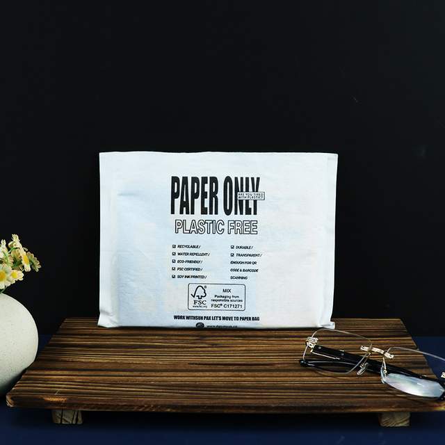 广泛的行业适配性拓宽了纸袋的应用边界。无论是需要防静电保护的电子配件、注重表面完好的精密仪器,还是要求防潮密封的美妆产品、食品干货,这款无塑木纤维纸袋都能精准适配。同时,平整的袋身支持印刷品牌 LOGO 与产品信息,兼具品牌传播与实用防护功能,帮助企业在环保转型中兼顾品牌价值与用户体验。