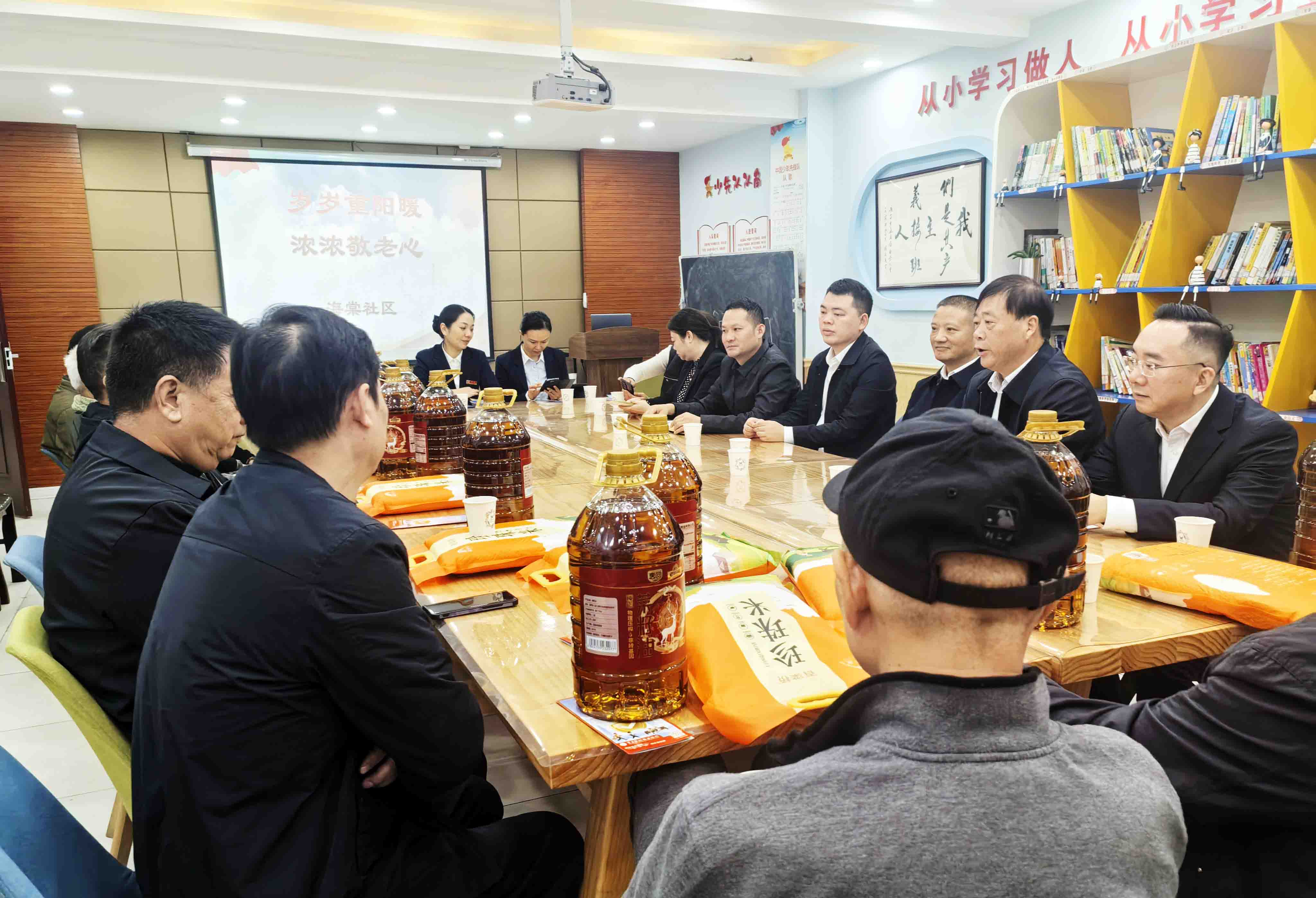 座谈会接近尾声时,工作人员为老人们送上了大米、食用油等暖心的慰问品。看着这些实实在在的礼物,老人们的眼睛里闪烁着感动的光芒,他们感受到了社区和商会满满的关怀。