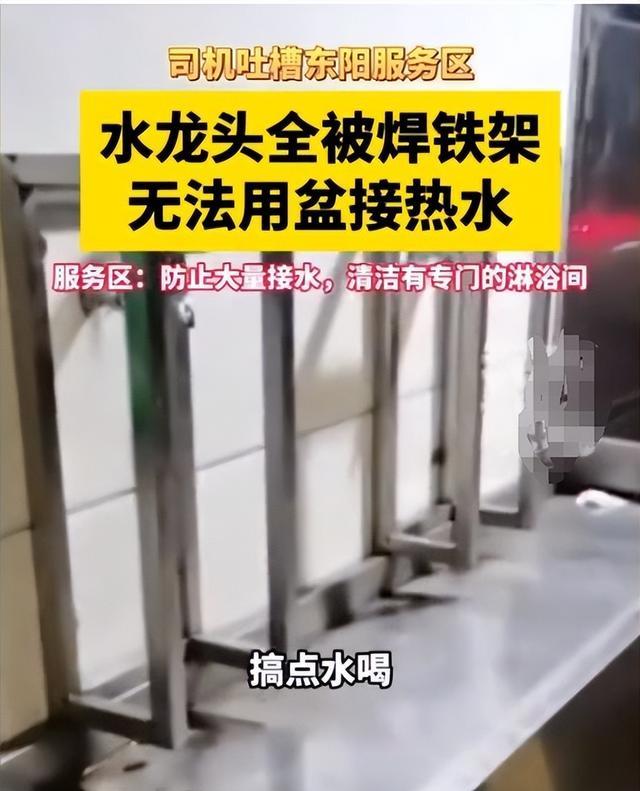 而东阳服务区的工作人员给出了同样的解释,表示实际拍摄的区域本来就是饮用水区,不是用来洗漱的,所以服务区为了防止司机大量接水,特地设置了钢架将水龙头焊死,而服务区这样做的的初衷飱为了防止司机浪费水资源。