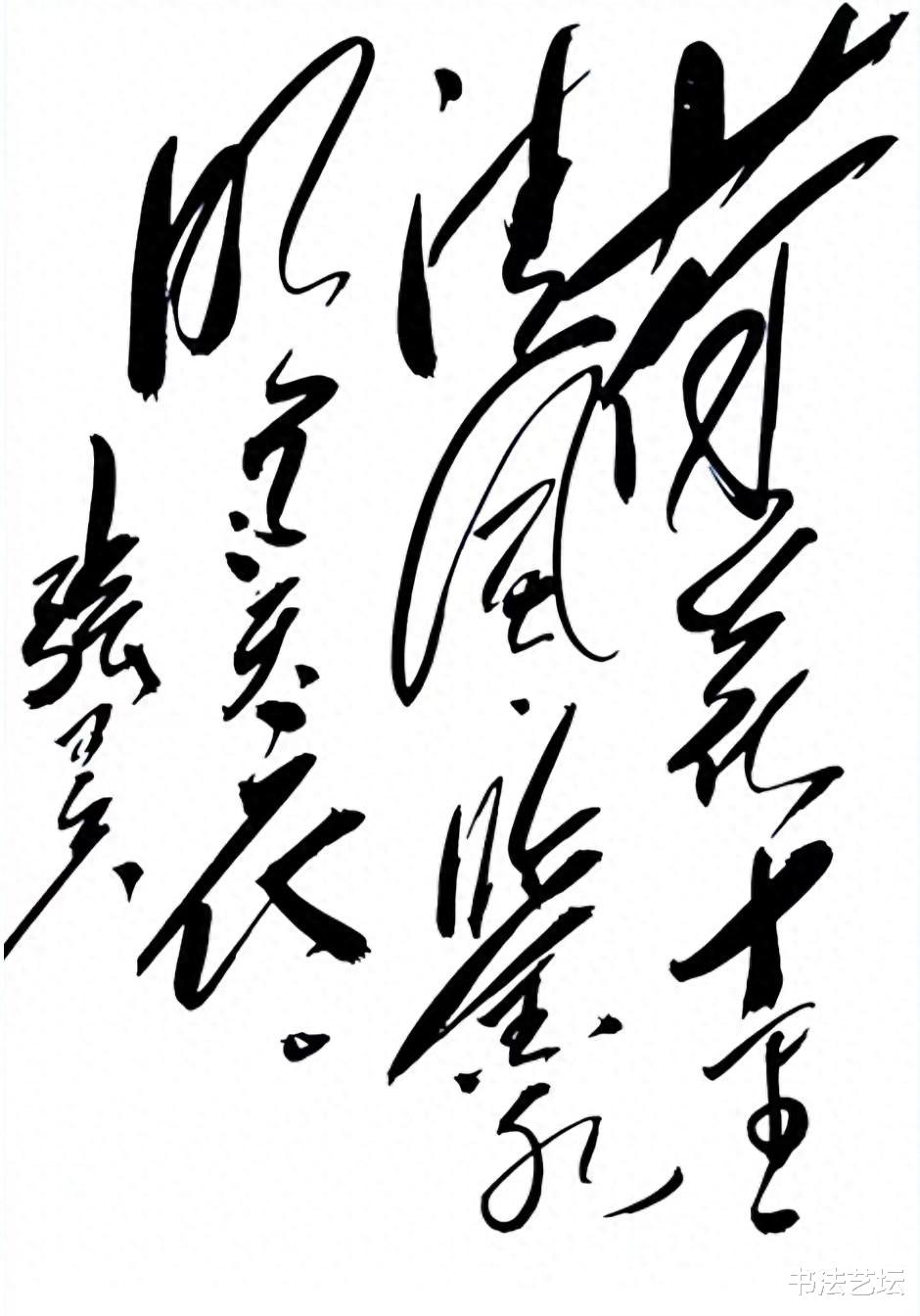 这个字整体上看,那种大气感,整件作品变化极具丰富,用笔干净利落,字法多变,是一件非常优秀的草书作品。笔法讲究点画的完整性、丰富性,如“花”字,入笔角度非常丰富,几乎没有相同的,收笔也是一样变化丰富,很奇怪吧,古人又没有国展培训班,他们为何要如此写呢?能无意识写出如此多的变化。