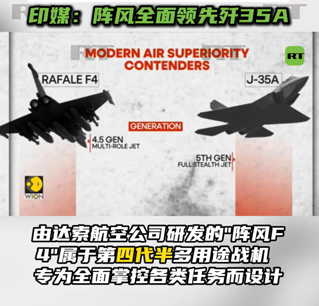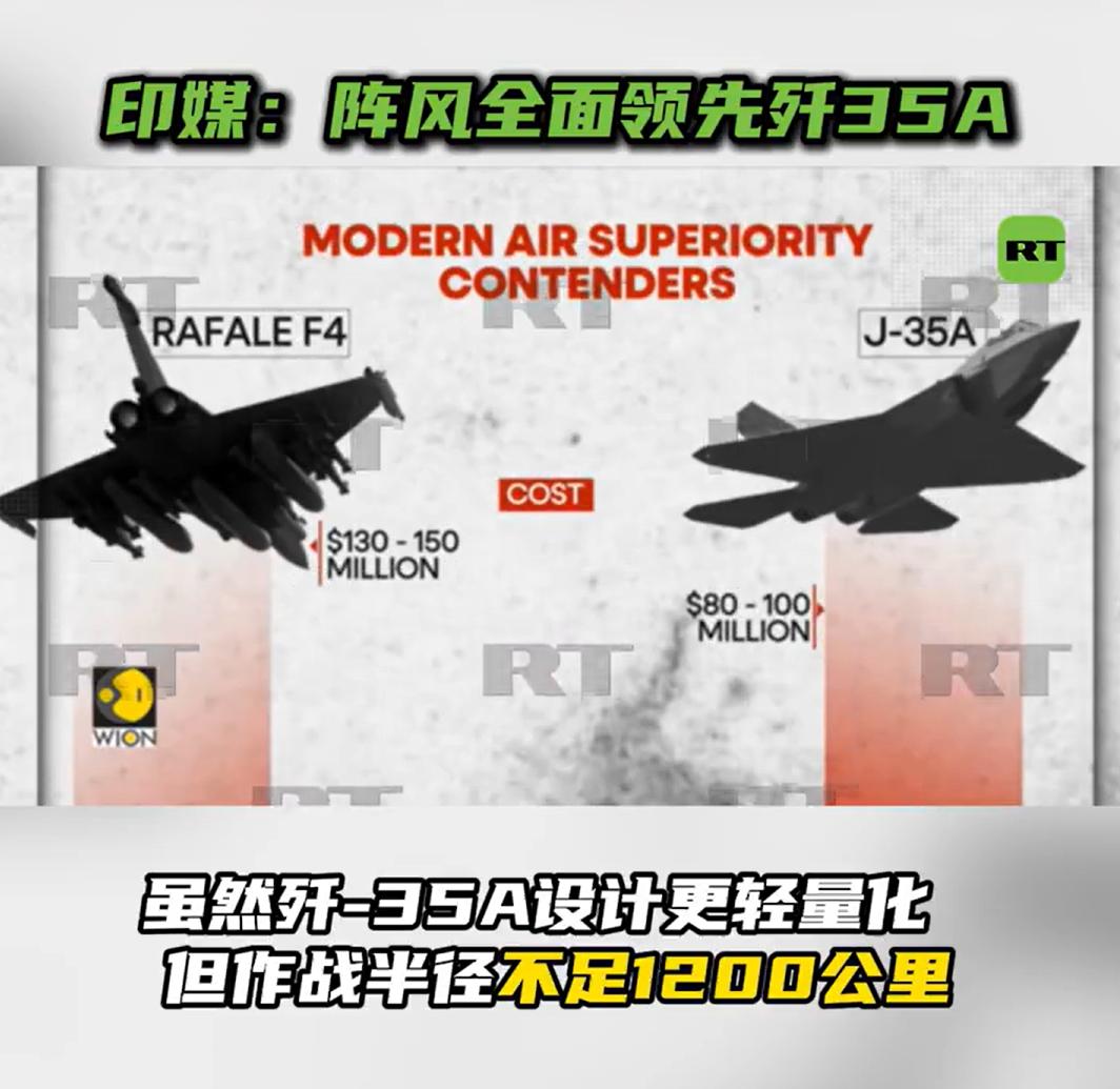 印度WION电视台的一个军事报道,拿阵风跟歼-35进行了比较,最终的结果,是阵风获胜。