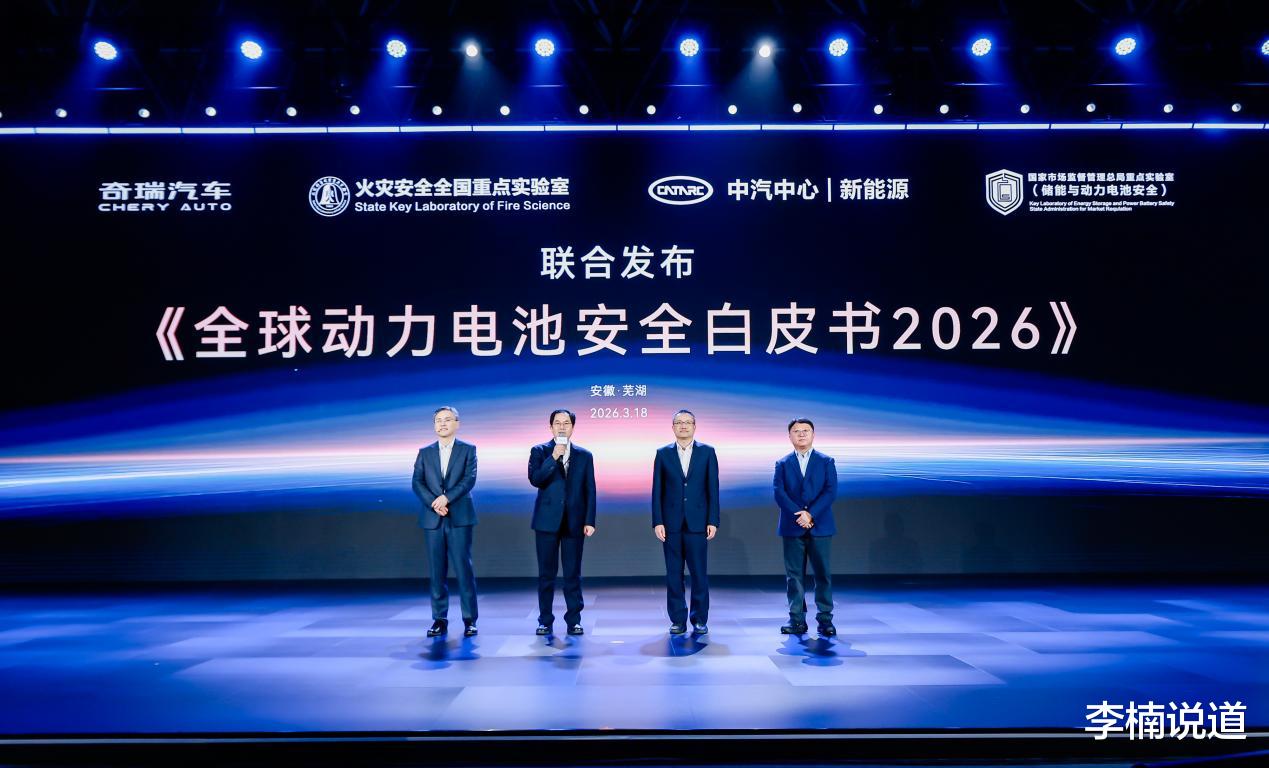 安全,从来不是简单的一项技术,而是一个标准、一套体系和一份承诺。在活动现场,奇瑞还携手火灾安全全国重点实验室、中汽中心丨新能源、国家市场监督管理总局重点实验室(储能与动力电池安全)等权威单位,联合发布了《全球动力电池安全白皮书2026》。古春山表示,这份白皮书凝结了奇瑞对电池安全的系统梳理与深度思考,作为中国汽车品牌的一员,奇瑞始终秉持着行业责任与全球视野,不仅要深耕自身的技术安全,更希望以技术积累和实践经验,为全球动力电池安全发展贡献力量。