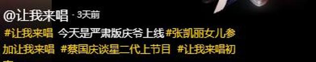 音乐节目《让我来唱》刚开播,最大的"热闹"竟被张凯丽闺女张可盈一人包揽!