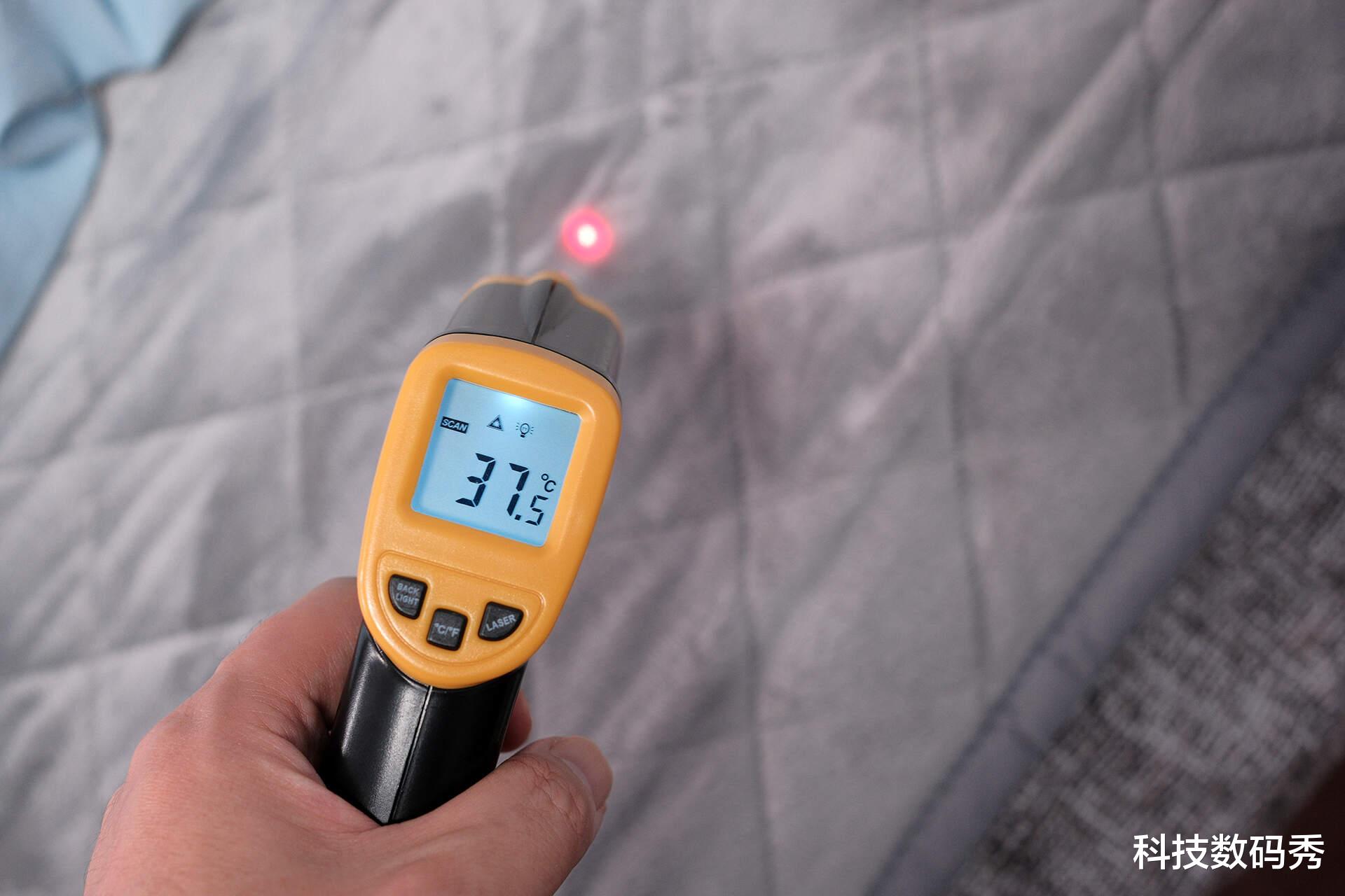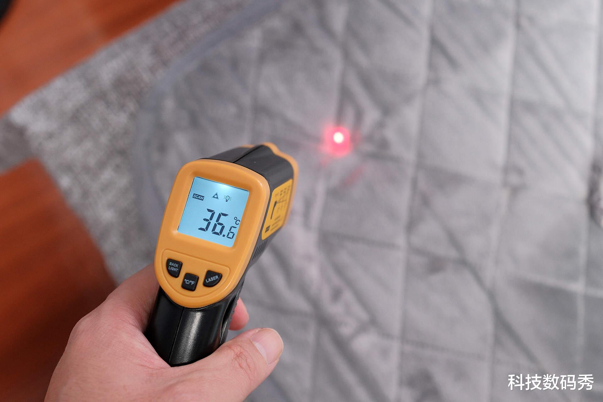 经过测温仪实测,以进水温度38℃为例,靠近进水管附近的毯面温度为37.5℃,一般电热毯在远离端很容易降温甚至有的连一点温度都没有了,电阻丝没有或者断了,而宫菱水暖毯即使在远离进水管的末端,实测温度也有36.6℃,温度相差不到1℃,还是非常均匀了的。