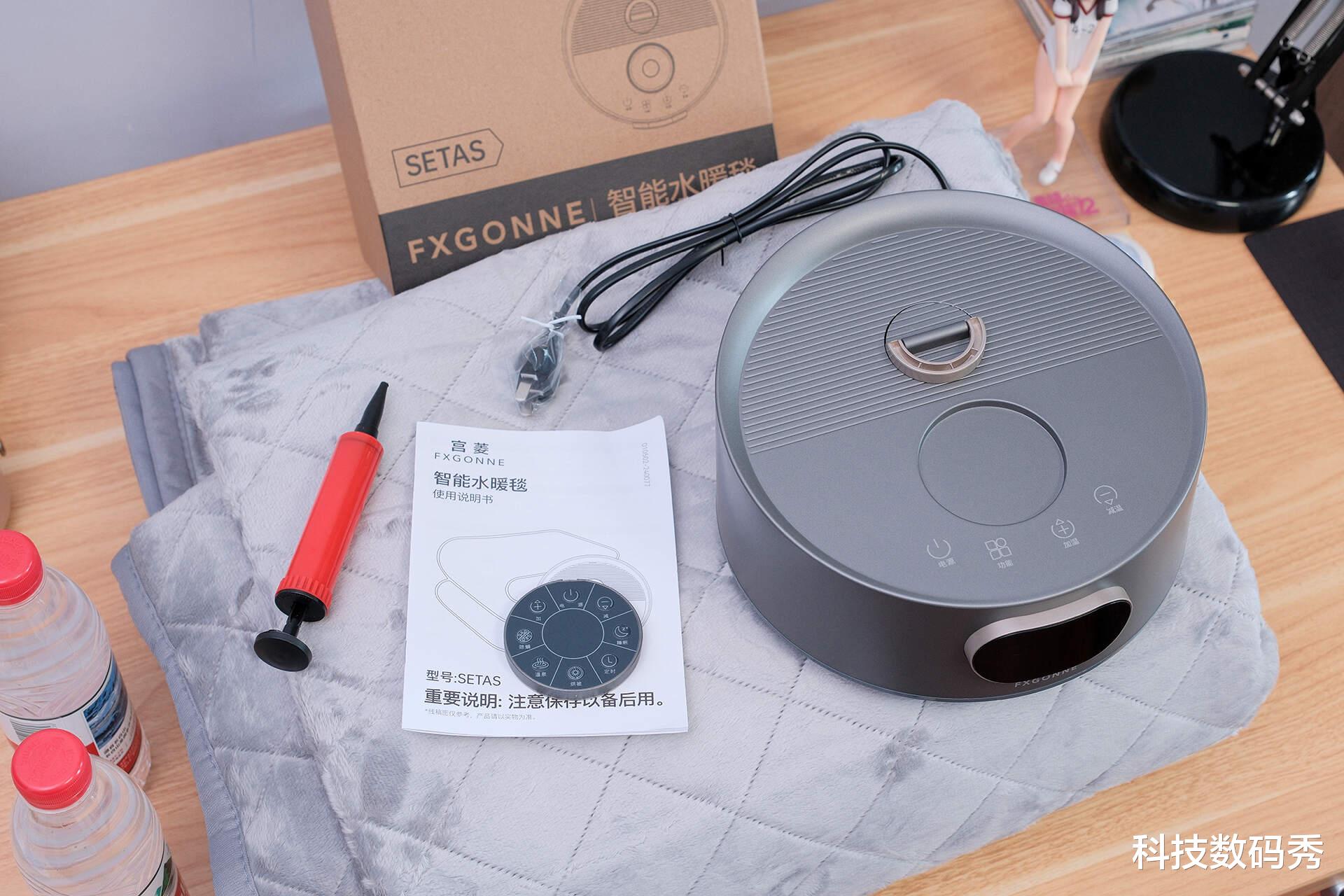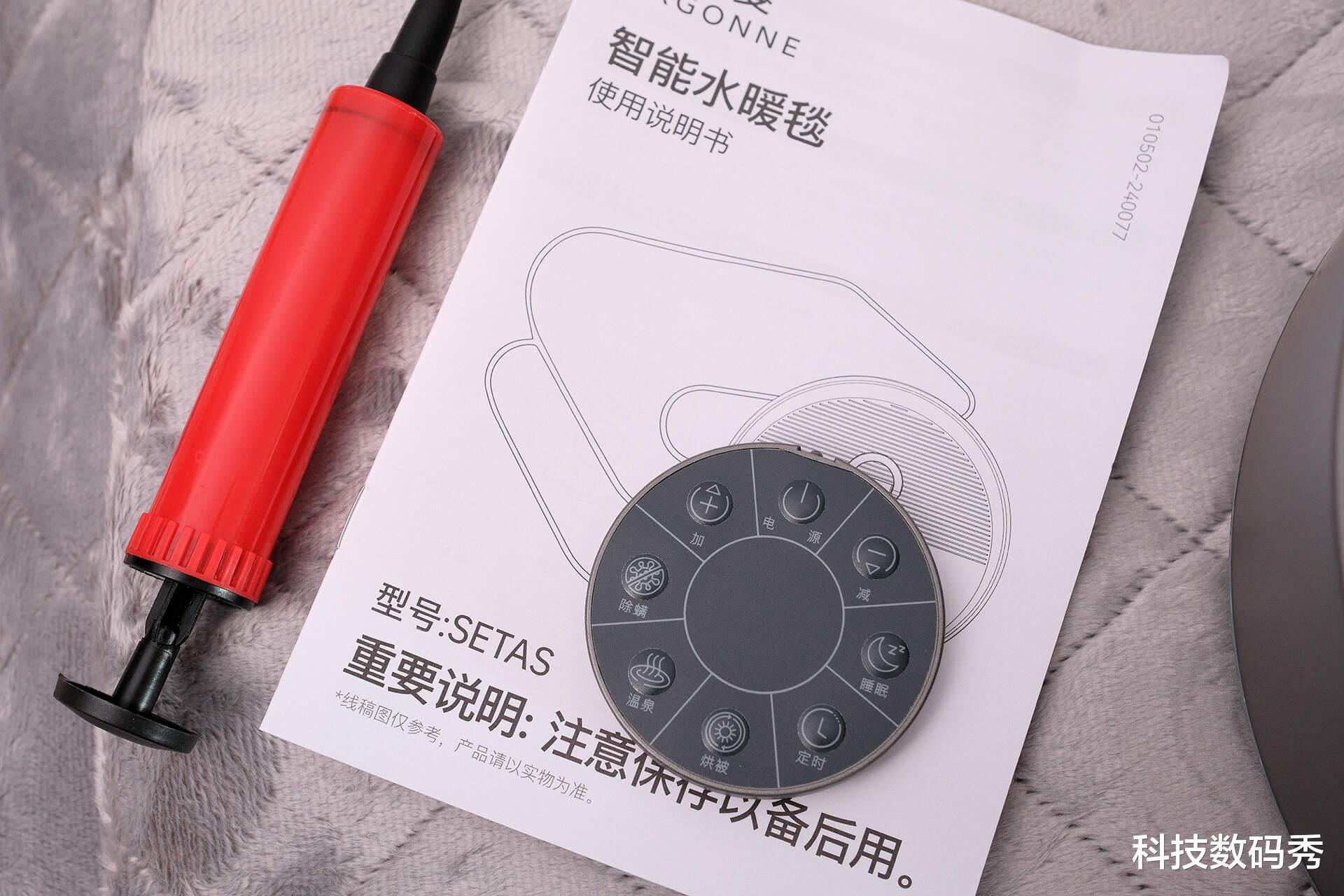 那接下来呢,我们就看看这款宫菱水暖毯到底是怎么用的。首先包装分为两部分,一个是水暖毯本身,一个是主机及遥控部分,我这款是180*200cm的,官方还有150*180可选,配件有产品说明书、排水打气筒、遥控器,另外还需要大家自备两瓶日常矿泉水,不建议用自来水因为时间长了容易产生水垢。