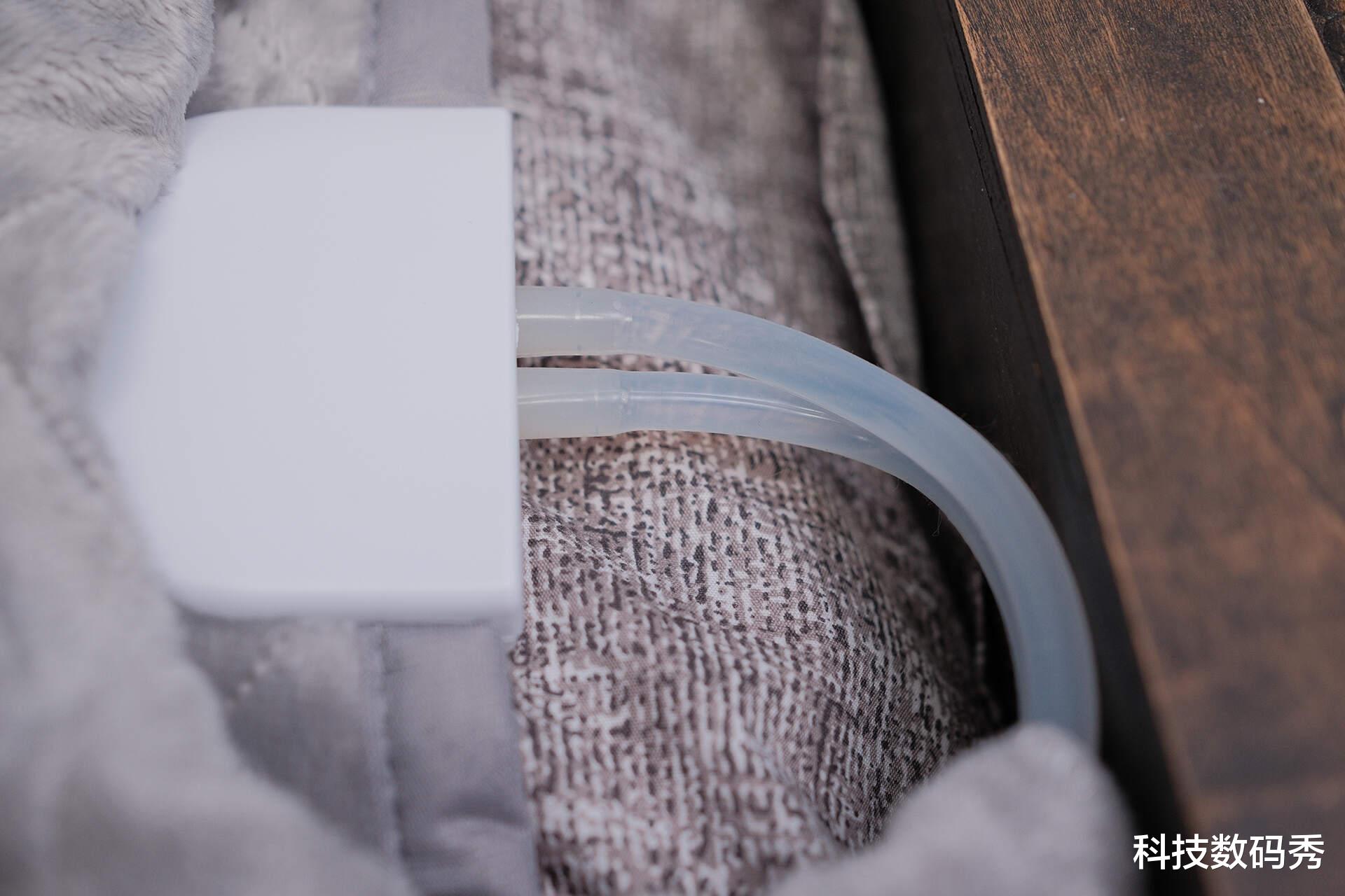 安装非常方便,只需要将循环水管和主机接头连接即可,插入时需用点劲插紧,避免使用时漏水。然后开始注入600ml矿泉水,基本上像农夫山泉怡宝这样的,一瓶半就够用了。注入水之后就可以插上电源并开机,此时主机电机会驱动进行水暖毯的水循环,后续用久了如果缺水的话自己随时注入就可以了。