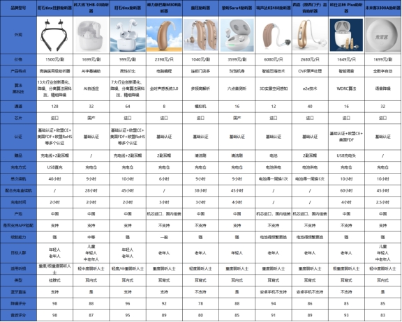 买助听器之前,肯定得了解下每款的性能对比,毕竟,花钱买的不仅仅是声音的放大器,更是与外界沟通的桥梁。为了让大家选购时有个明确参考,接下来是我测评过的几款助听器的详细数据对比,方便大家在性能、价格等方面作出明智选择。