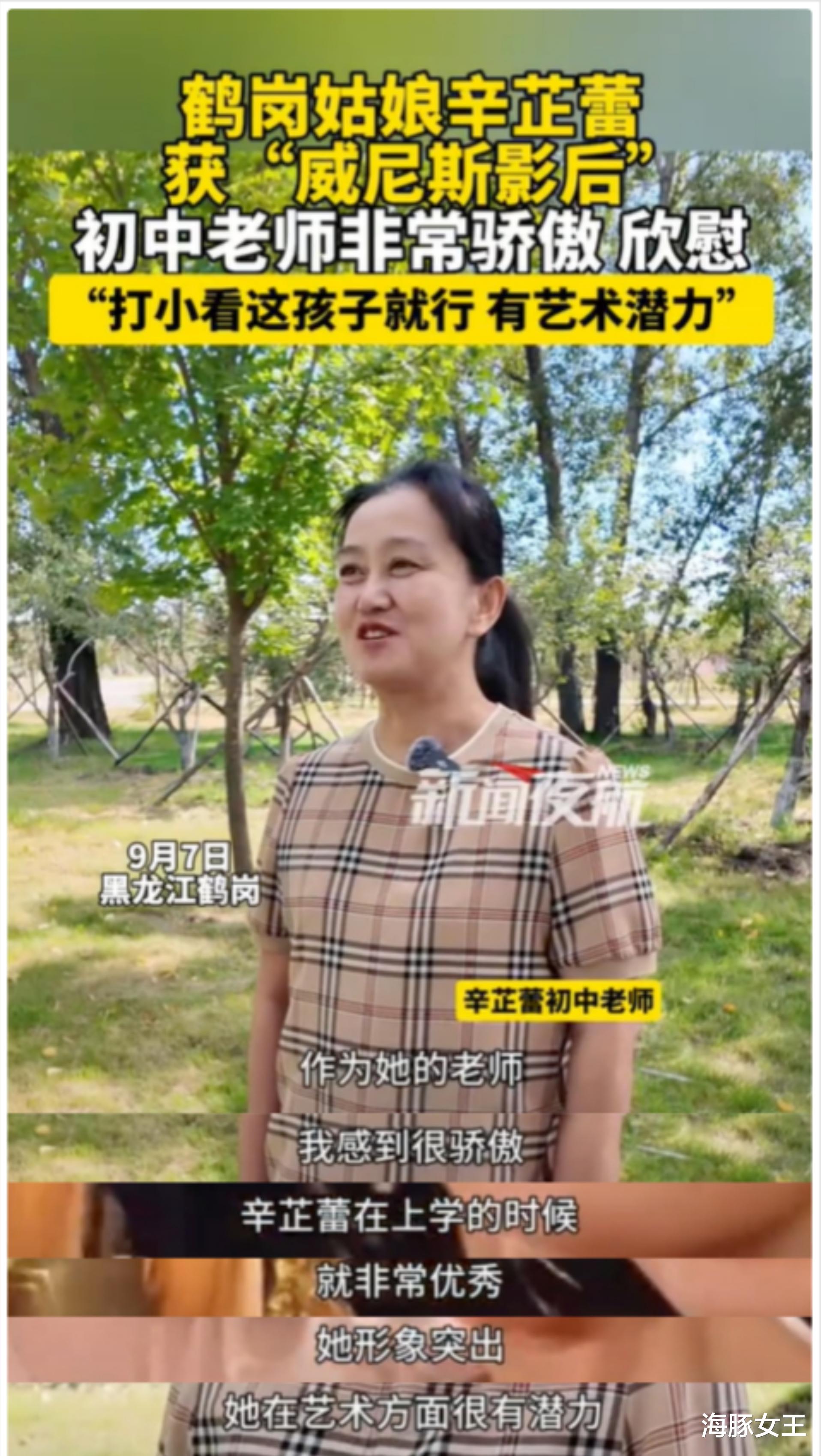 辛芷蕾的初中老师笑的合不拢嘴,坦言对辛芷蕾印象深刻,觉得她性格开朗,形象突出,从小就有艺术潜力。