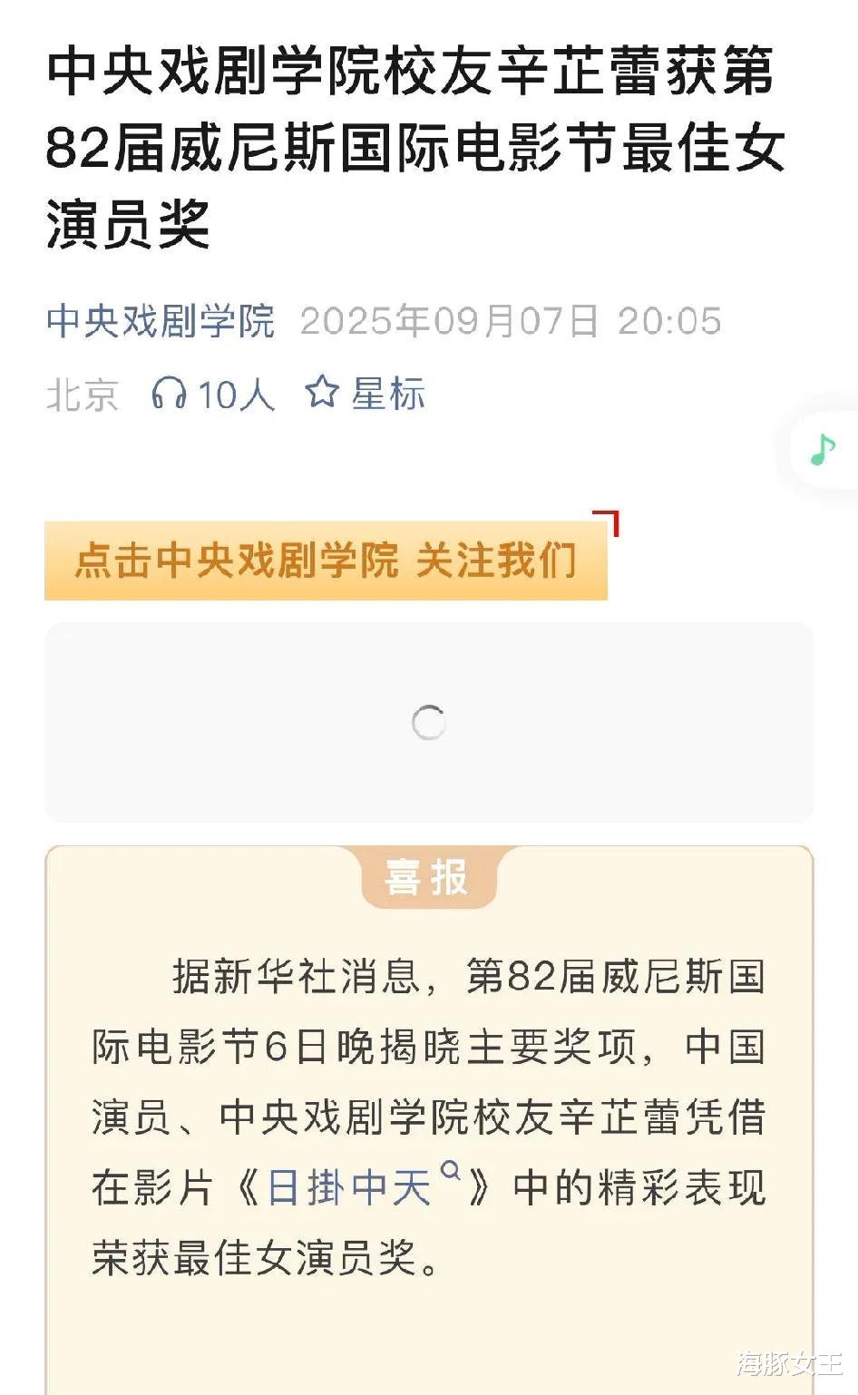 2025年9月7日,辛芷蕾通过电影《日掛中天》一举夺魁,荣获威尼斯影后,让人刮目相看。