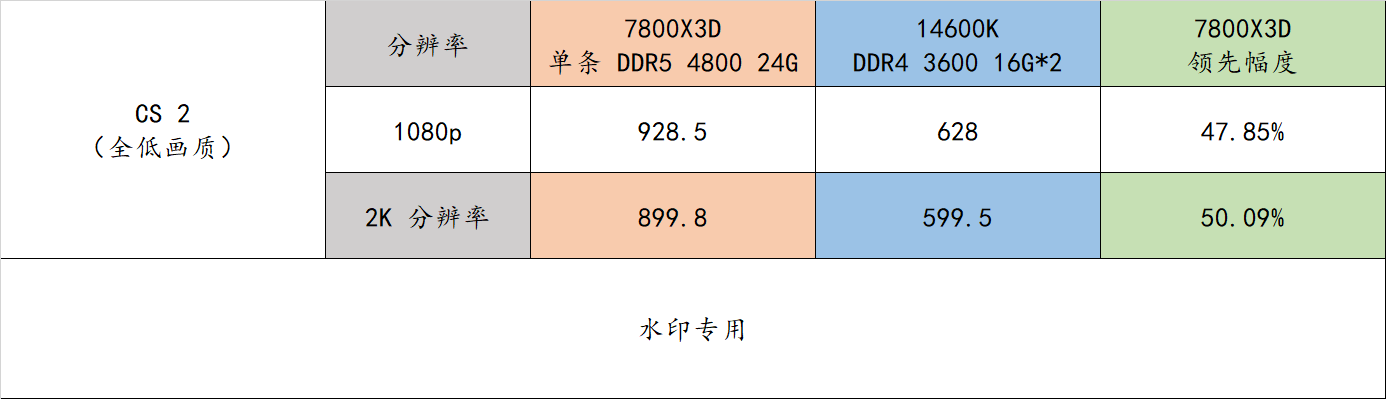 7800X3D 平台在 2K分辨率下的游戏流畅度领先 14600K 平台达到了 50.09%