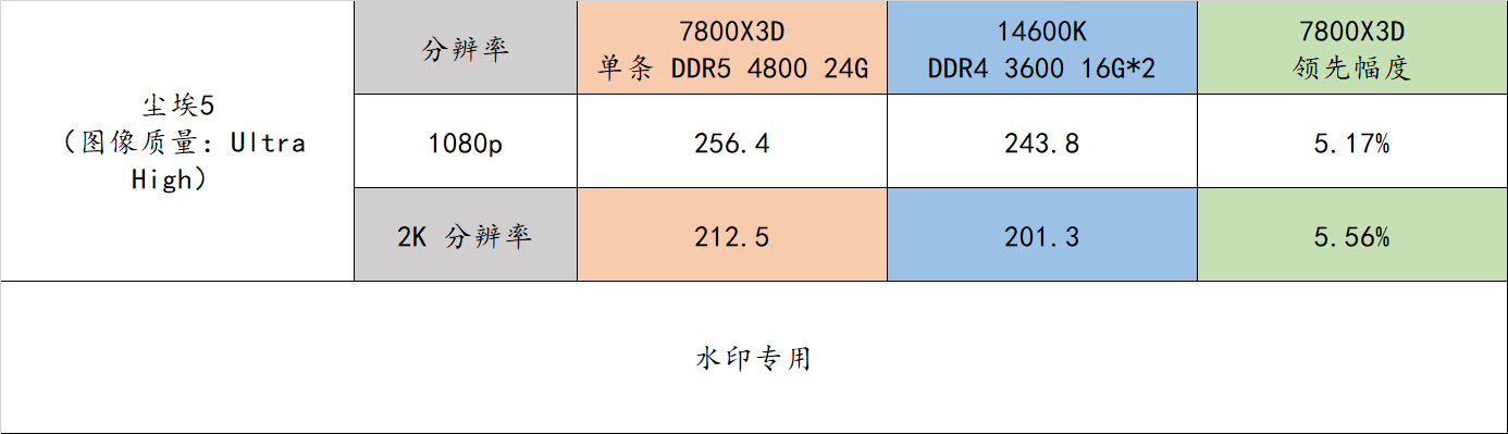 7800X3D 平台在 2K分辨率下的游戏流畅度领先 14600K 平台达到了 5.85%
