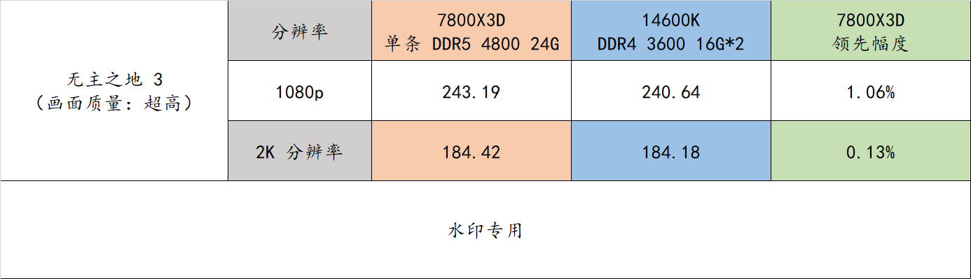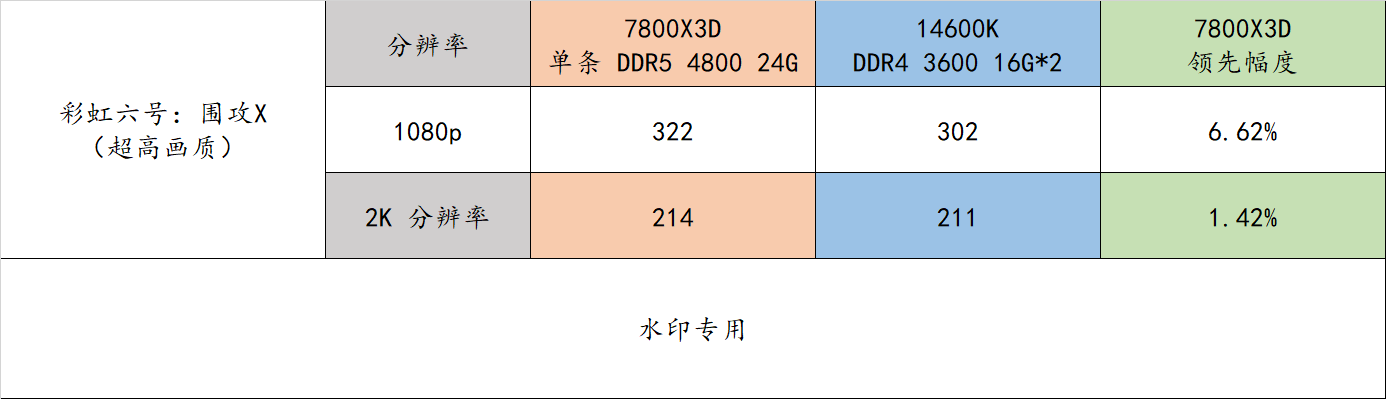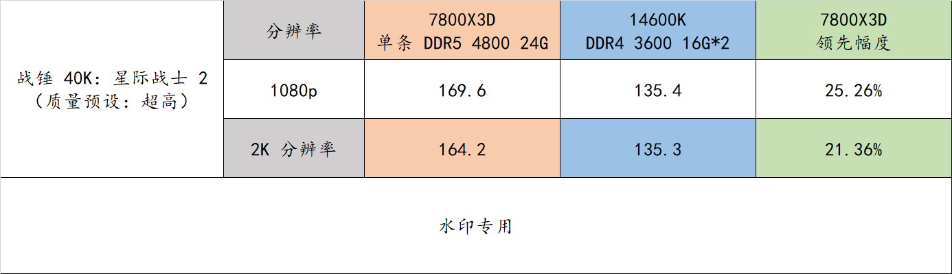 7800X3D 平台在 2K分辨率下的游戏流畅度领先 14600K 平台达到了 21.36%
