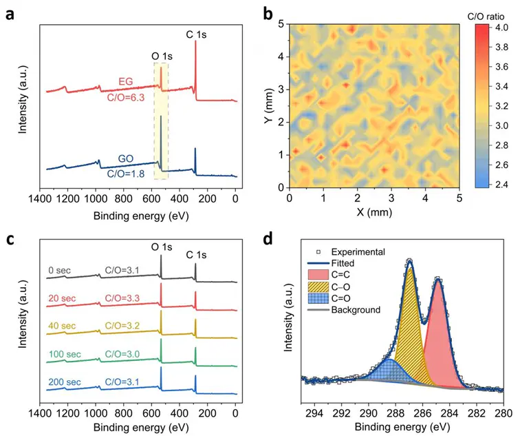 从化学作用力角度解释了层间距为何随含量增加而增大XRD例如,测试显示的氧含量远低于的氧含量,说明表面的含氧官能团少,与片层的氢键作用弱;无法形成紧密堆叠,导致层间距增大。