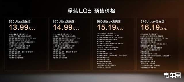 10月30日,深蓝汽车的全新车型深蓝L06正式开启预售,新车共推出四个版本,限时权益价区间13.99万到16.19万元,搭载磁流变悬架,全系标配了激光雷达,入门就能享受高配。
