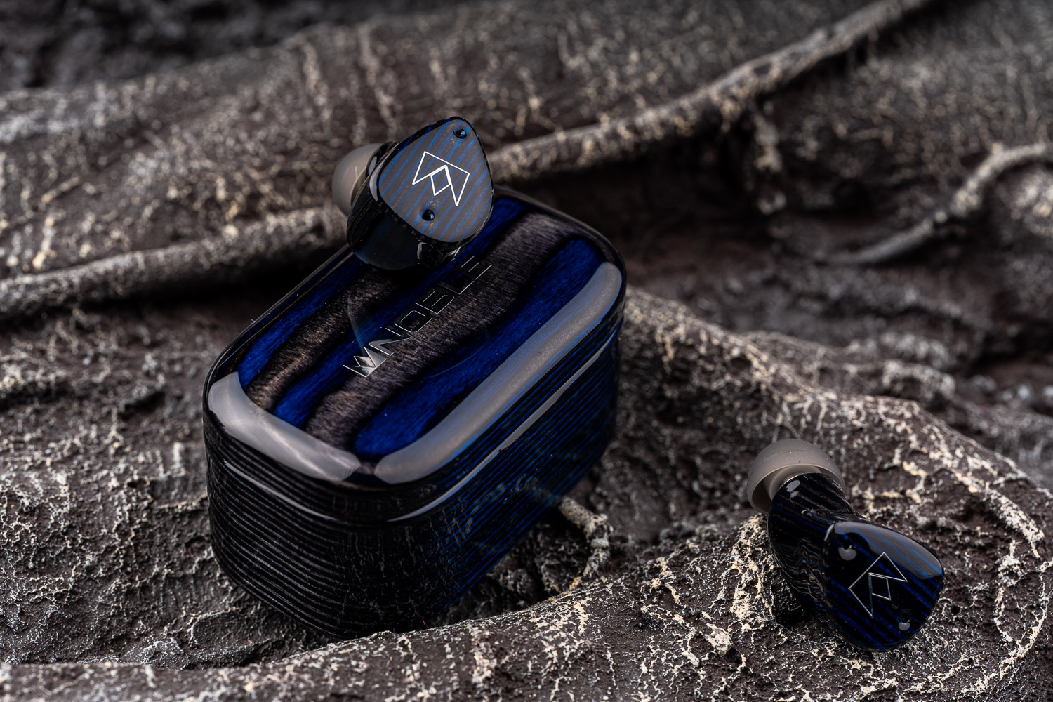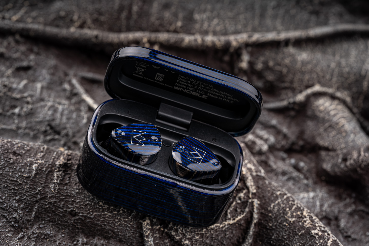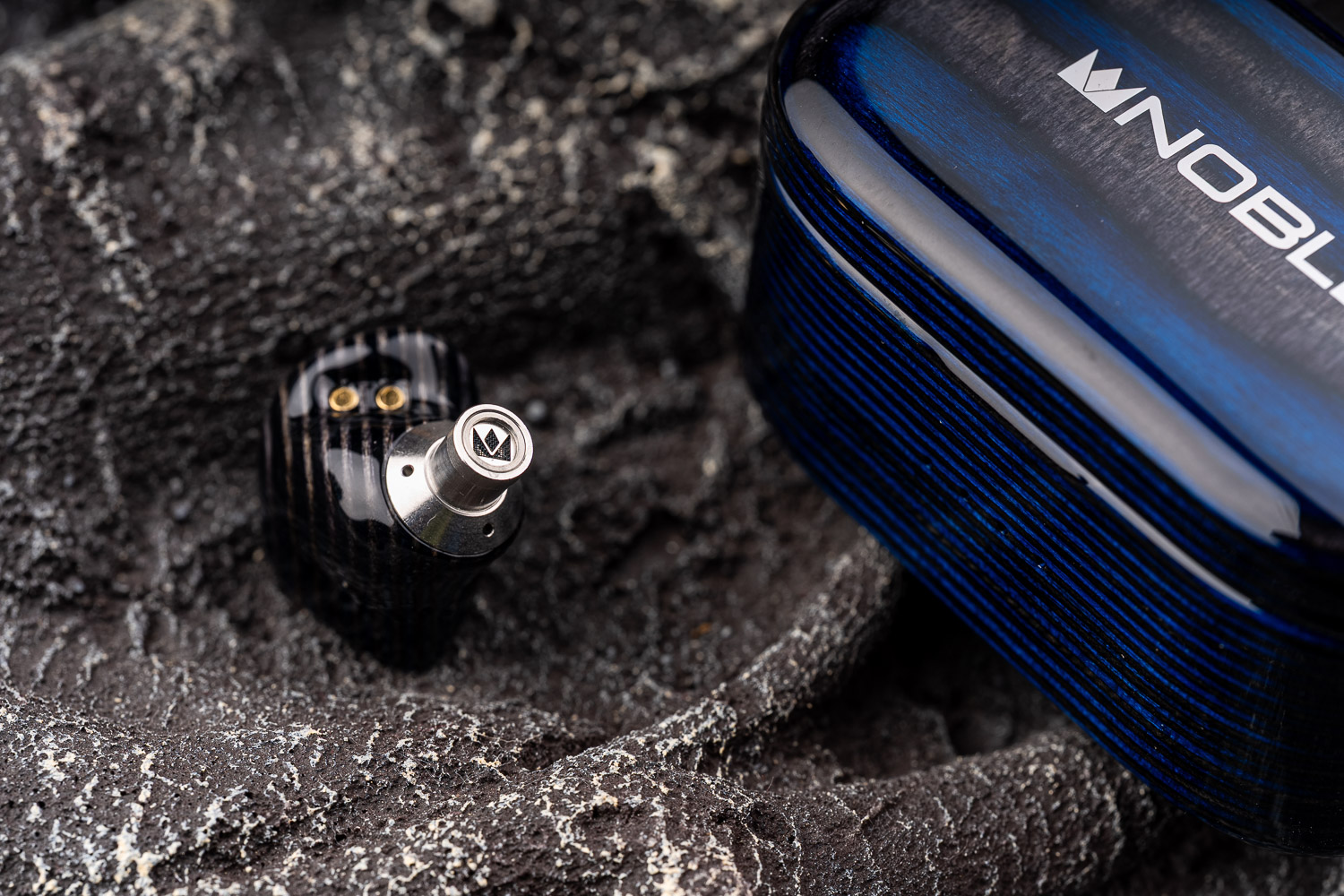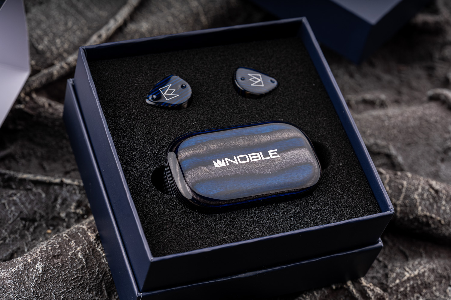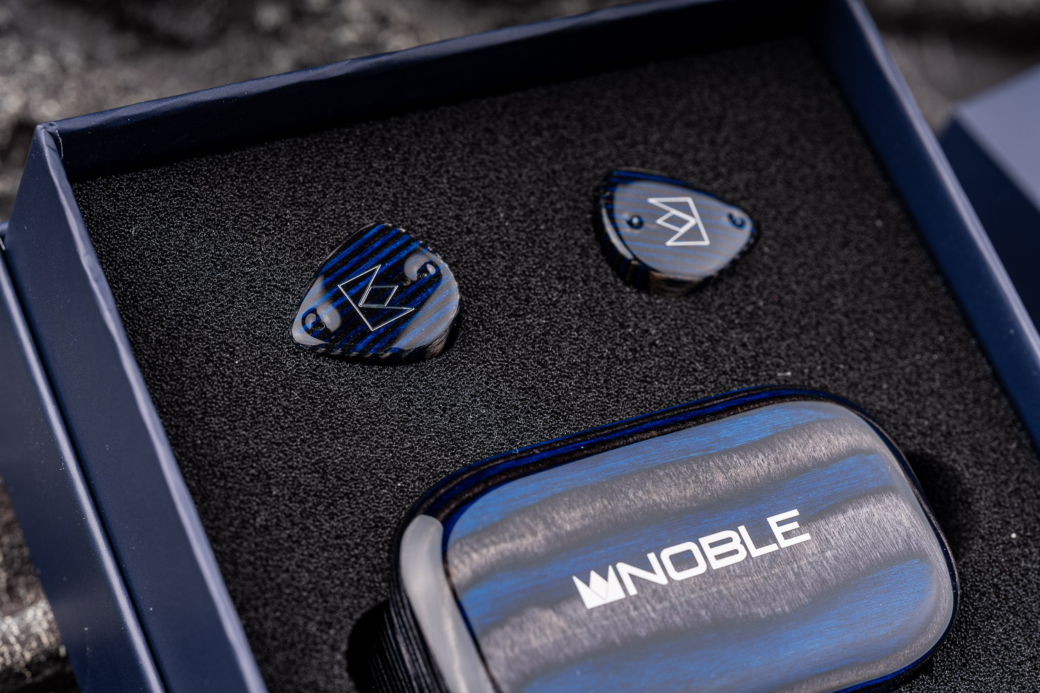 开箱环节,能看到依然是熟悉的稳定木材料,深邃的蓝色与漂亮的光泽感有着很高的辨识度,因为稳定木的纹路有时候也是不完全可控的,所以能够选到漂亮且协调的大面积纹路来做充电盒应该也是得费不少心思。Noble家是行业里比较早去做稳定木CNC耳机壳的品牌、而且工艺精度非常优秀,包括稳定木,木如其名,确实是一种性质更稳定、更适合做产品的东西,它本质上是通过真空和压力处理,将树脂、色浆等材料注入木材内部形成的复合材料,性质比纯实木来的更长久稳定、颜色与纹路也有着更多的可能性,而Noble家的一个特色就是用户在选购Prestige系列的定制私模耳机时,可以选择他们官网给出的不同稳定木的样板、并且能要求切割其中哪一块自己喜欢的纹路,由内而外都更为贯彻“私模”这件事。