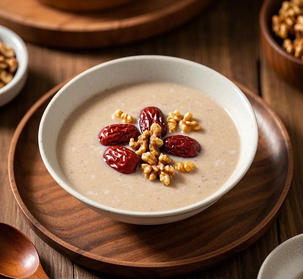 所需材料:大米100克、红枣8颗,去核、核桃30克,掰碎、清水800毫升、蜂蜜适量(可选)