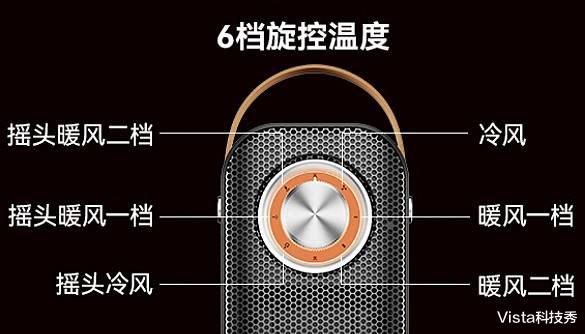 西圣Warm X暖风机开关设计为旋钮式,上、下位置为关机位,顺时针分别为冷风、暖风一档、暖风二挡,左侧加上了摇头后成为摇头冷风、摇头暖风一档、摇头暖风二档,6档旋钮根据需要冷热风、摇头轻松调节档位到舒适的状态。