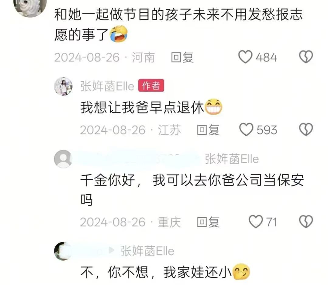 张雪峰女儿在2024年也曾经在微博留下过评论,她希望爸爸能早点退休,这样他就有足够的时间休息,也有足够的时间陪她。现在看来,这句话太令人泪目了,那时候她才九岁而已。
