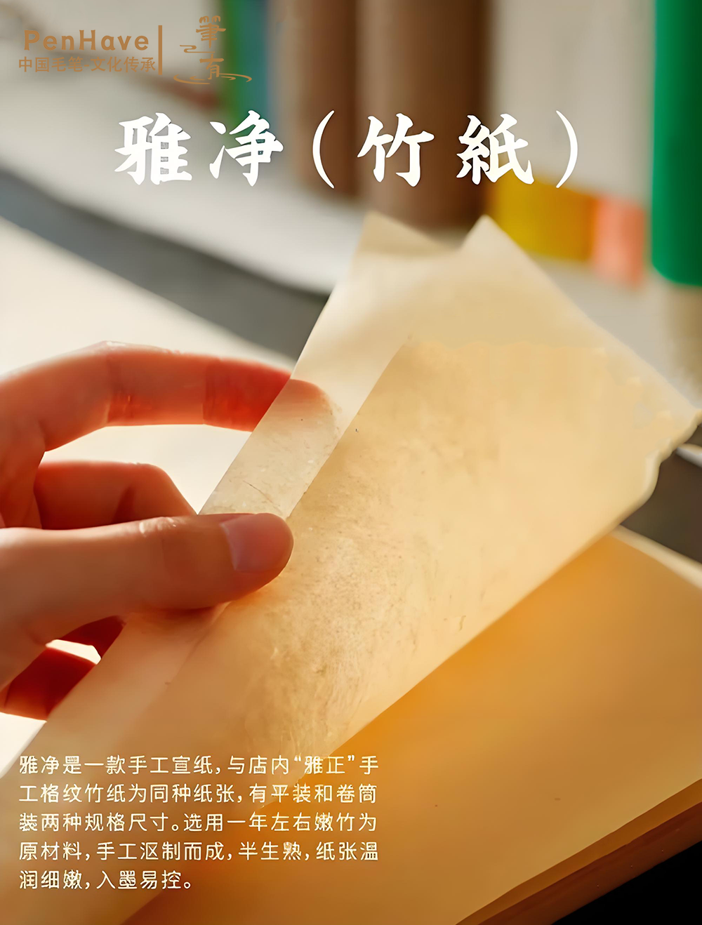 竹纸以嫩竹为原料,始制于晋代,成熟于宋代。竹纸质地较薄,纸色微黄,具有天然的书卷气和简约美。福建连史纸、江西毛边纸、四川夹江书画纸都是竹纸的佼佼者。