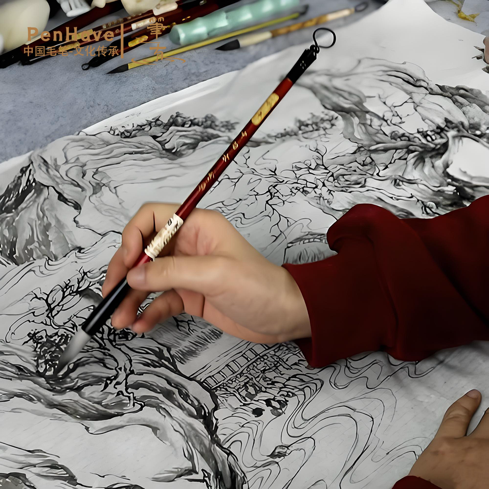 水墨山水注重层次渲染,宜选用厚实宣纸,经受得住多次皴擦渲染。