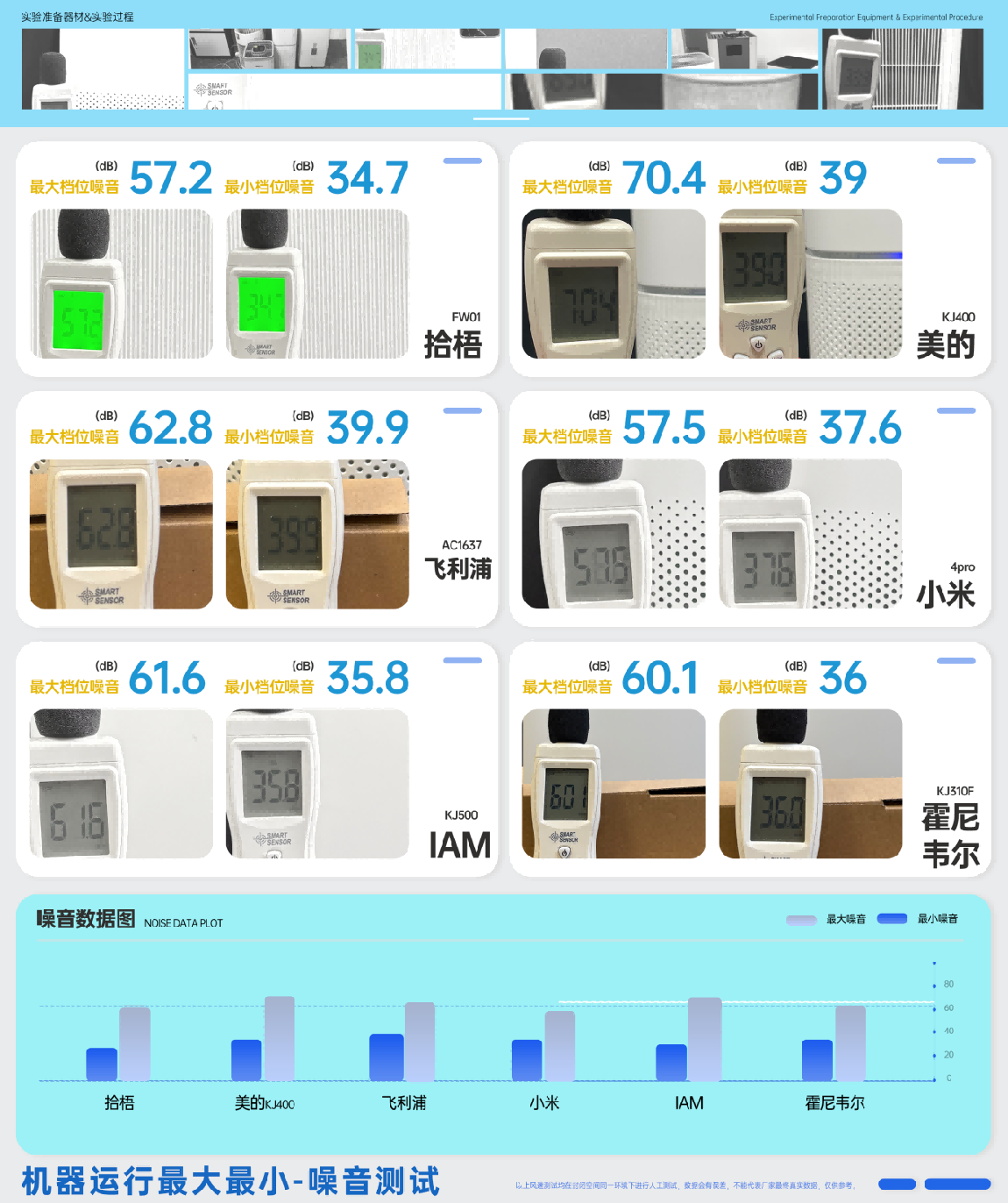 静音表现中等:小米、飞利浦、霍尼韦尔、IAM