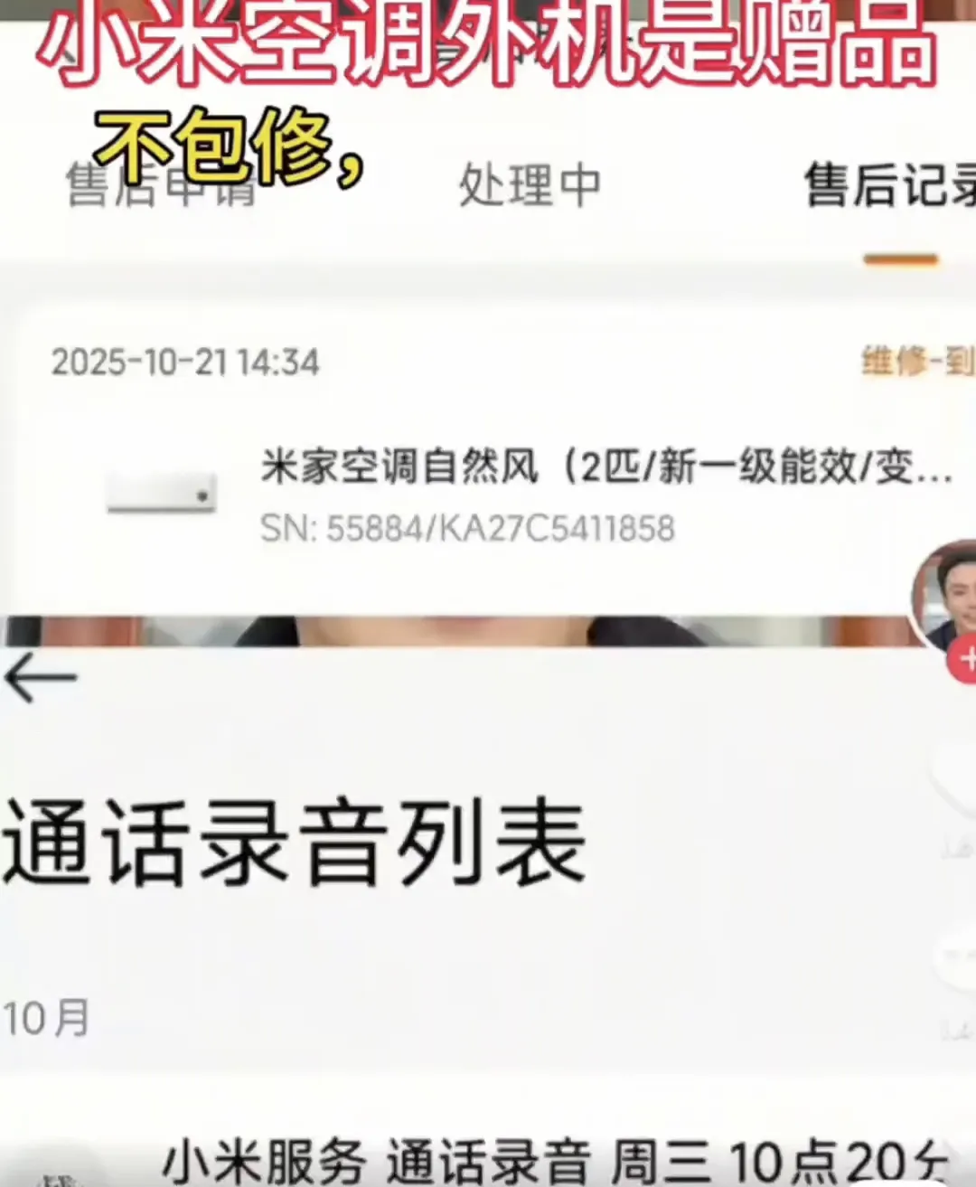 到底怎么回事呢?有网友发视频爆料,前几天,自己发了一条吐槽小米空调外机是赠品,不包修的视频。