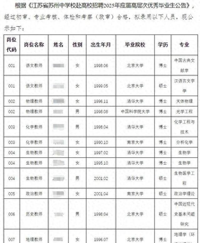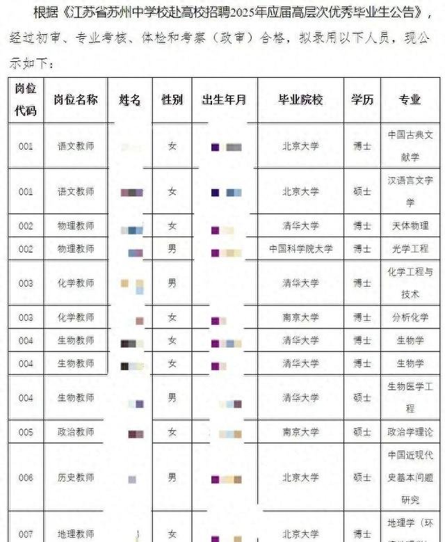 在招聘教师这件事上,江苏省苏州中学最近的“高调操作”引发了不小的热议。13名新聘教师,清华6人、北大4人,博士8人、硕士5人,师范生一个都没有。这份名单一出,瞬间就让人感觉苏州中学的招聘标准有点像唐朝科举考试的“金榜题名”。可问题是,这份“金榜”真的香吗?我们不妨一起来聊聊。
