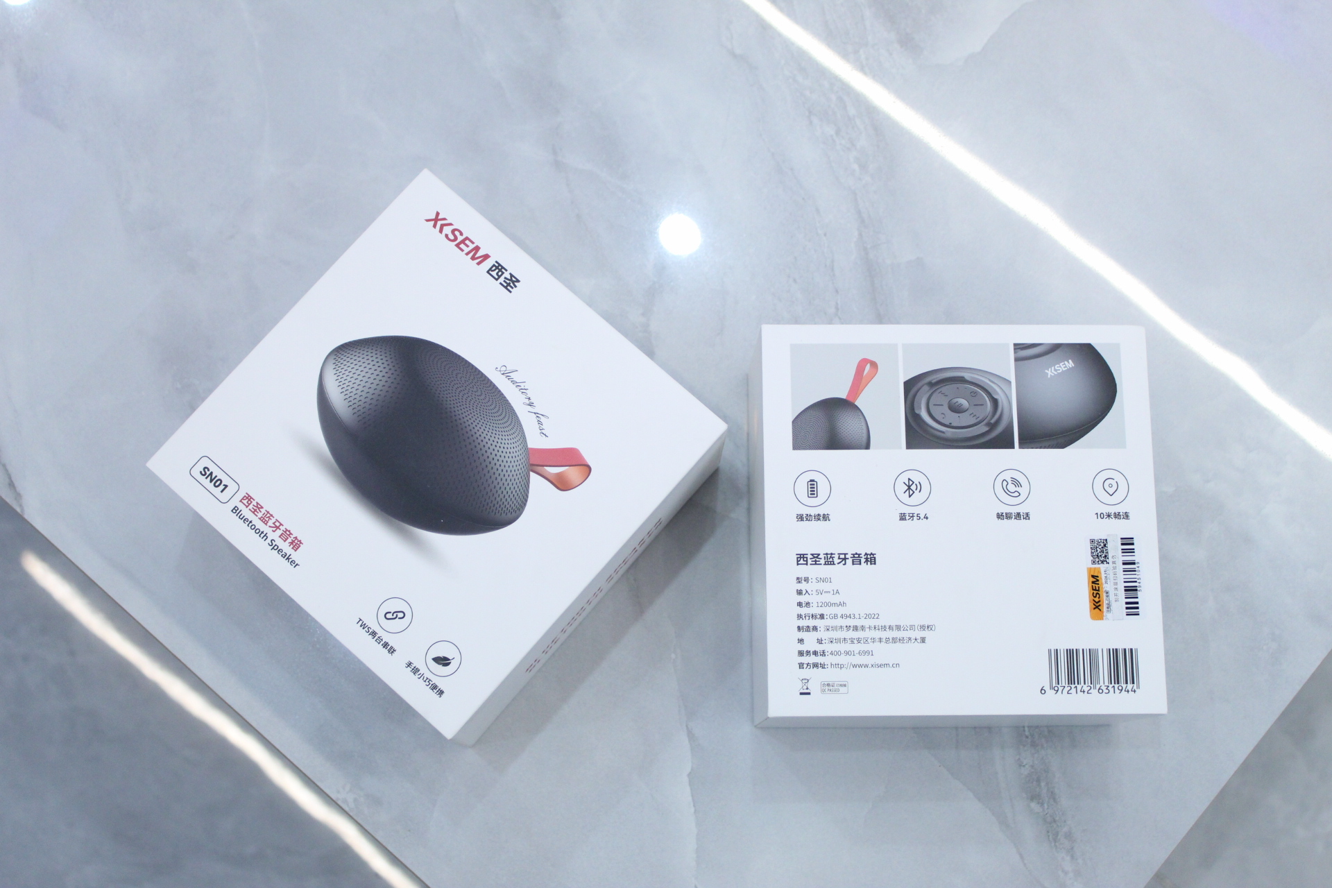西圣SN01采用简约时尚的设计风格,机身小巧轻便,一手即可掌握,轻松放入背包或口袋,非常适合户外出行携带。音响表面采用耐磨防滑材质,搭配IPX7级防水设计,无惧雨淋泼溅,即使在户外恶劣环境下也能安心使用。