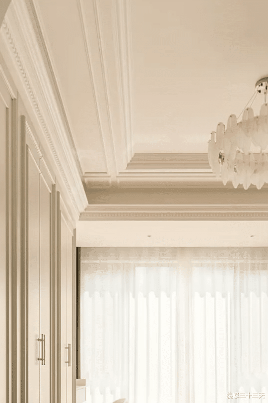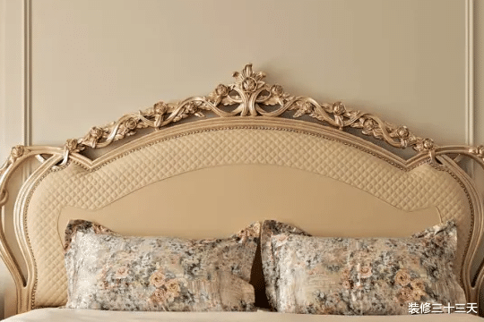 ▲ 背景墙线条勾勒造型与家具精致的法式雕花呼应
