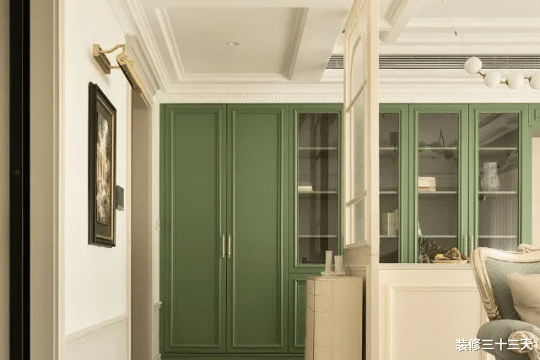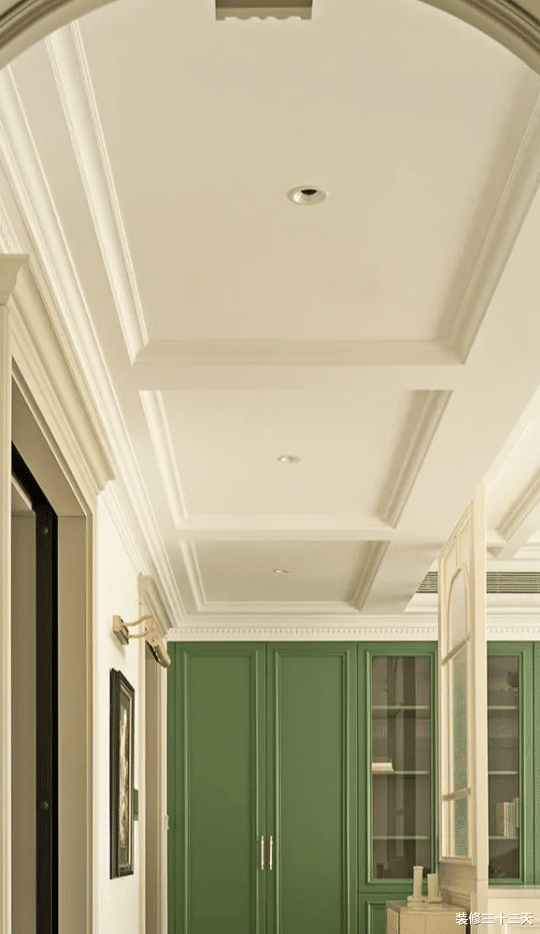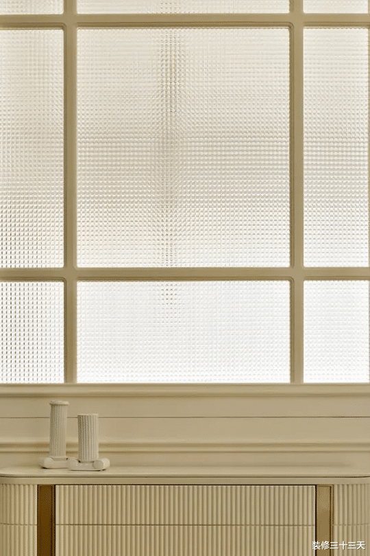 ▲ 步入家门,映入眼帘的深邃石材纹理,让人第一时间就能感受到经典古典主义的气质,演绎界而未界的艺术玻璃,经典的窗格元素散发出奇妙的神秘感,不仅是区域划分,同时强调了玄关的独立性