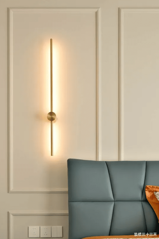 ▲ 床头点缀金色线性壁灯营造氛围