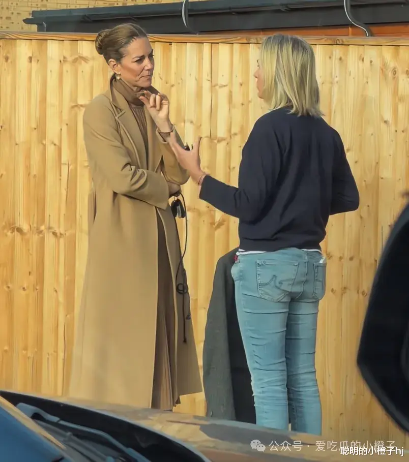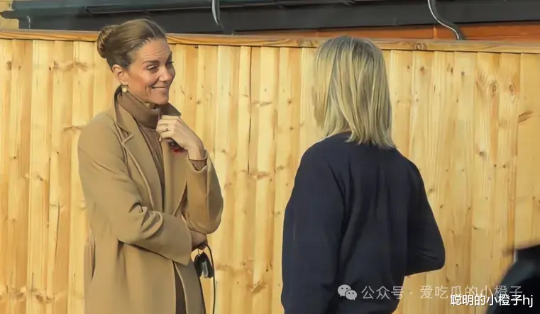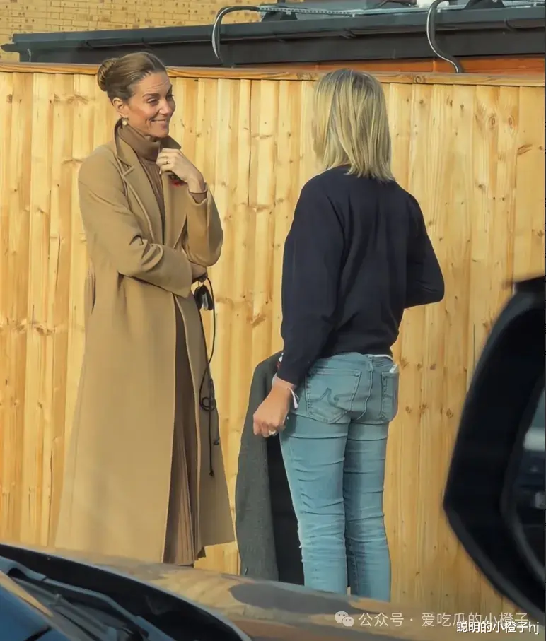照片中的凯特王妃正站立在一位疑似学生家长的女性在沟通,看得出来,王妃与这位女性相交甚厚,