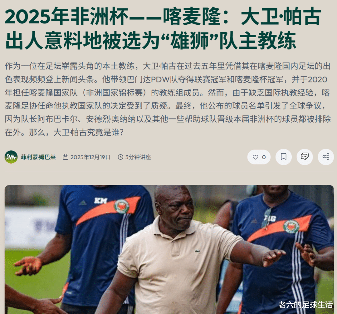 埃托奥则直接任命大卫·帕古成为国家队的新主教练并公布了一份全新的28人非洲杯大名单。