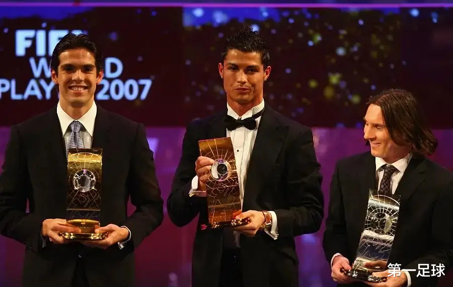 但是有一人,却曾经力压C罗和梅西,那就是卡卡,2007年,卡卡获得金球奖,排名第二的是C罗,排名第三的是梅西。同年,世界足球先生的奖项也被卡卡揽入怀中,排名第二的是梅西,排名第三的是卡卡。