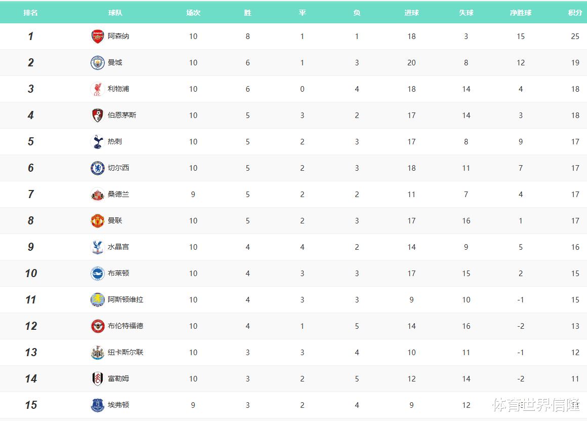 1、英超,阿森纳稳定坚挺,红军红魔不符合预期英超大多数球队已经完赛10场,目前阿森纳表现稳定且坚挺,领先第二名曼城6分独自领跑。