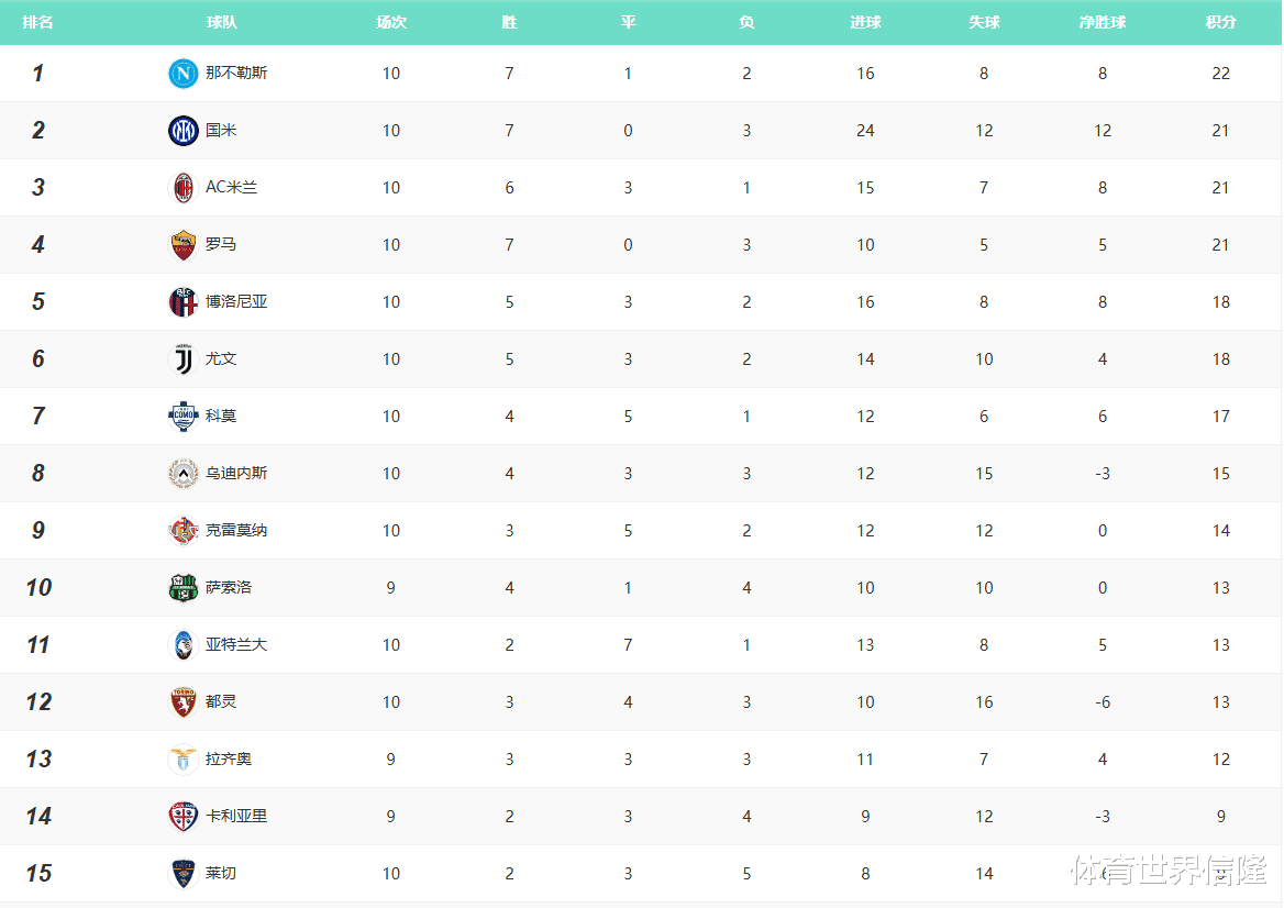 3、意甲:那不勒斯坚挺,米兰学会打硬仗上赛季夺冠的那不勒斯本赛季依旧坚挺,不过他们目前仅仅领先1分并不保险,身后的追兵米兰双雄和罗马都只落后他们1分。