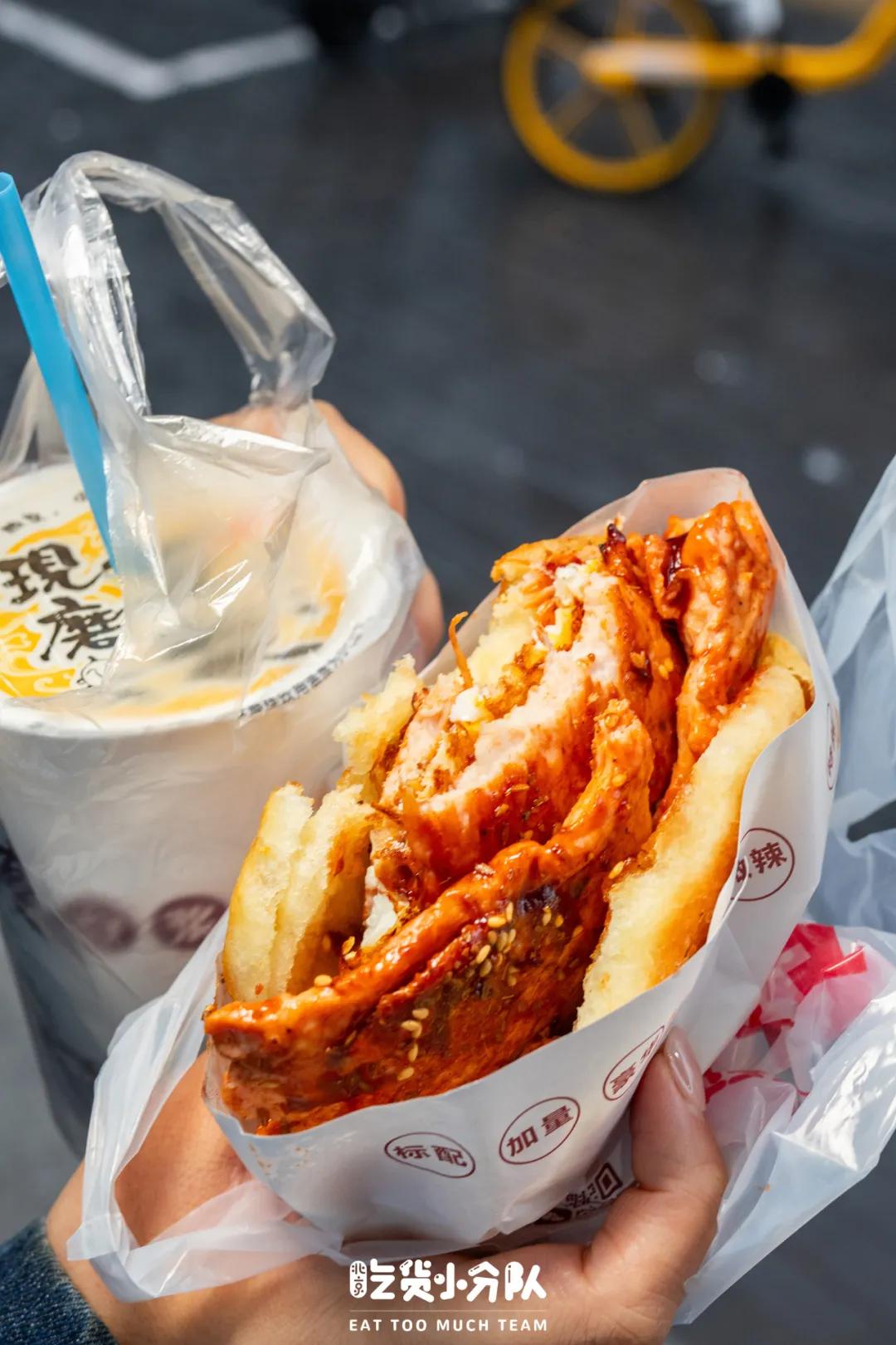 现在有专门门店在卖的烧饼夹里脊,有3种规格可选,鸡蛋数是固定的,可以多选里脊。他家的烧饼很突出,热乎的很酥很香!鸡蛋很嫩,爱蛋人士一定会喜欢。里脊是鸡肉的,酱是那种经典的咸+微甜口,确实很符合小时候的感觉。
