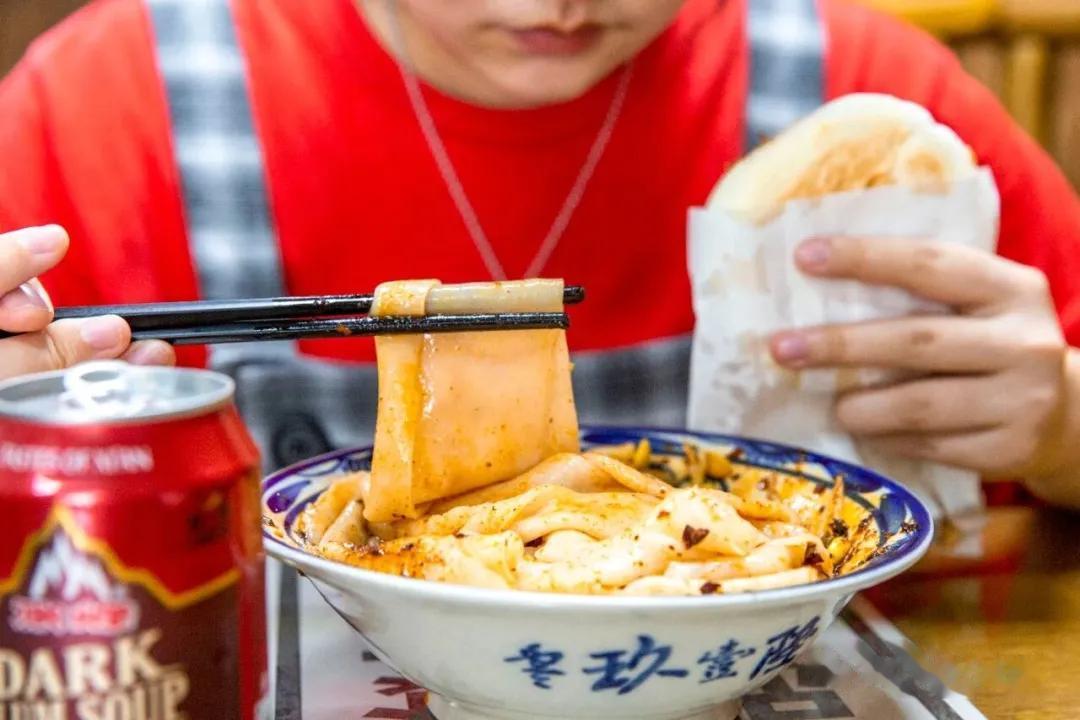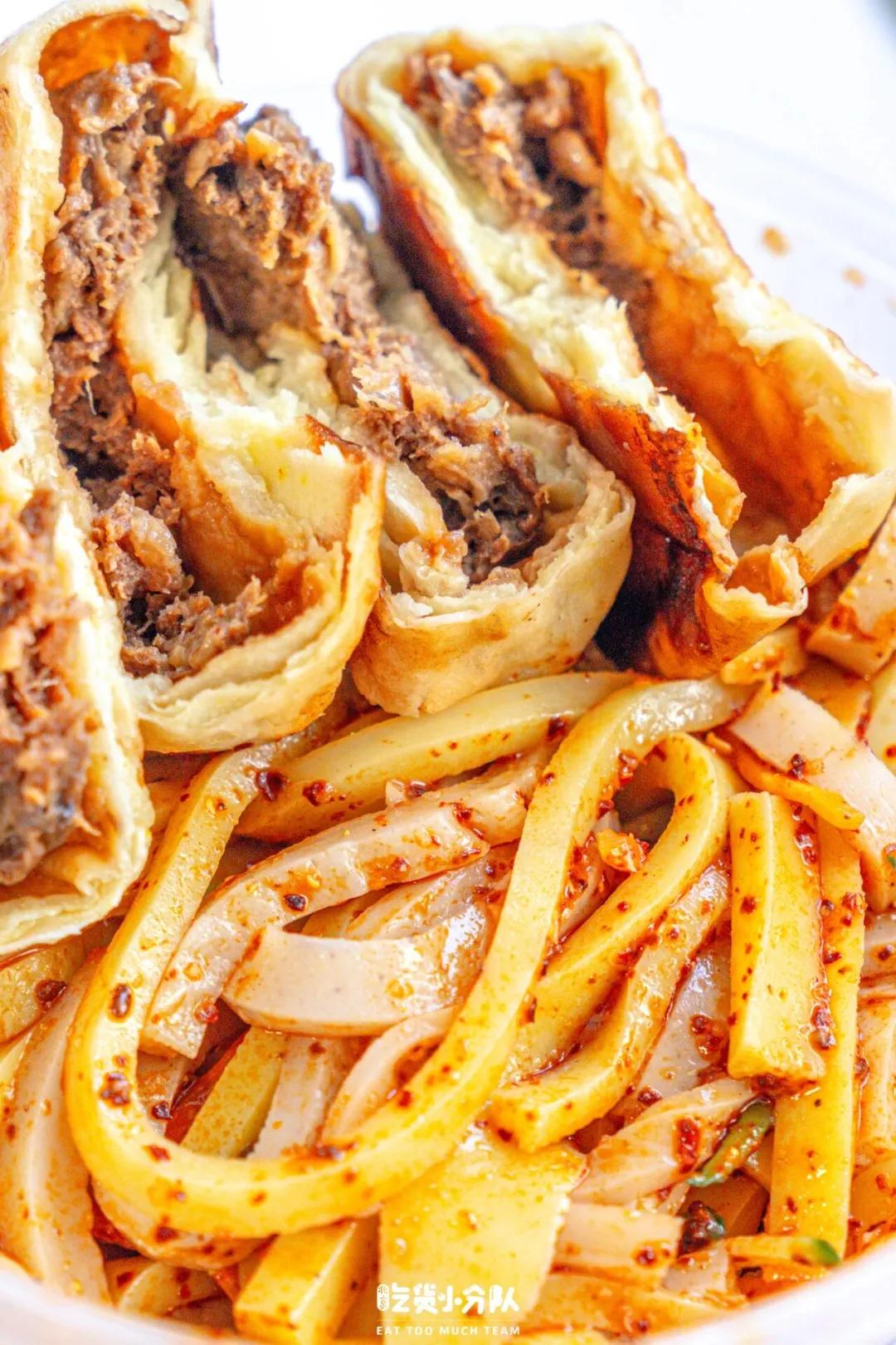 来自西安必吃榜的子午路肉夹馍,他家的经典肉夹馍可选择不切or对半切。个头很大,里面的腊汁肉肥瘦得当,吃的过瘾。店里还有米皮、凉皮、油泼裤带面等各种碳水,吃完小心晕碳!