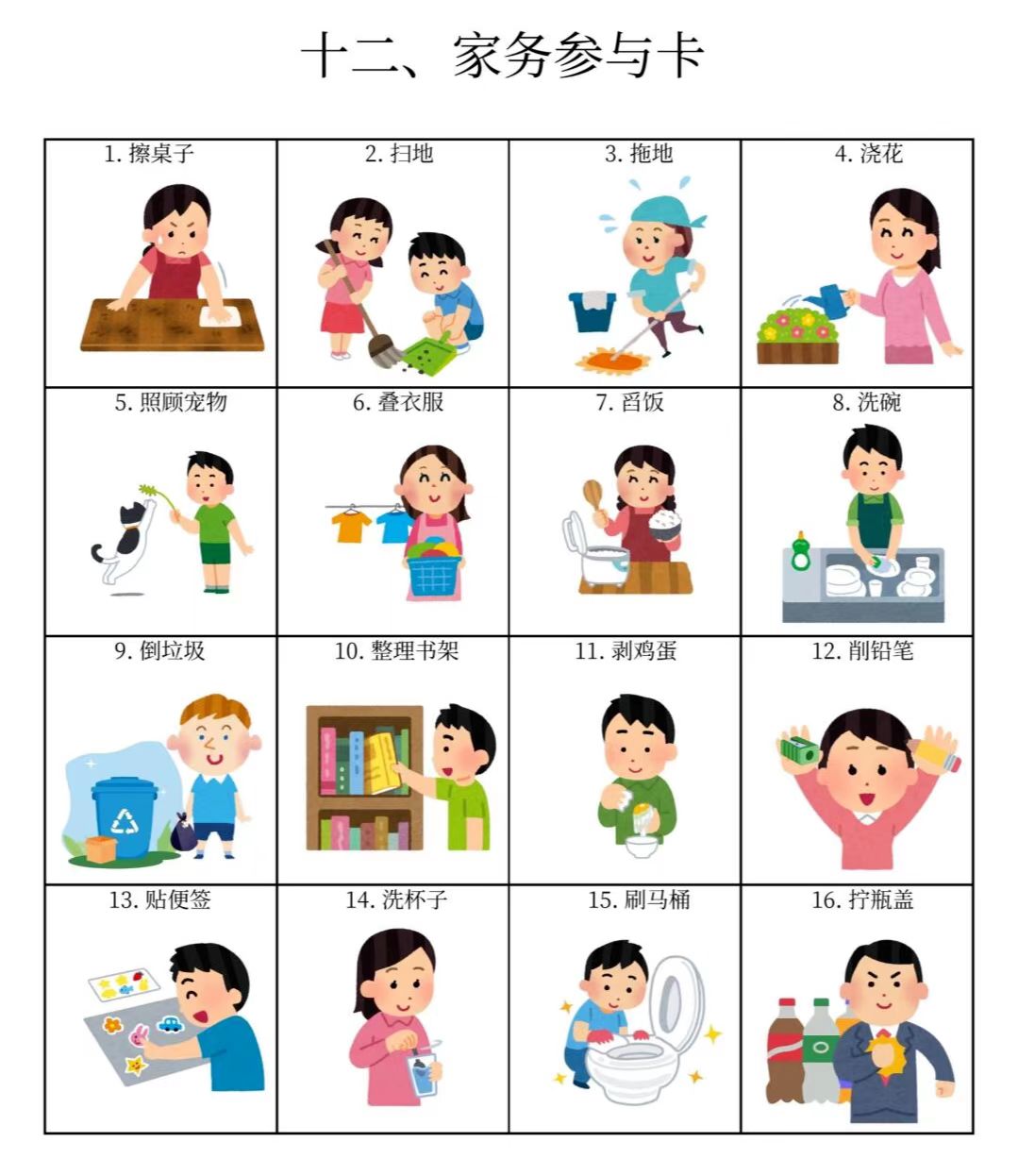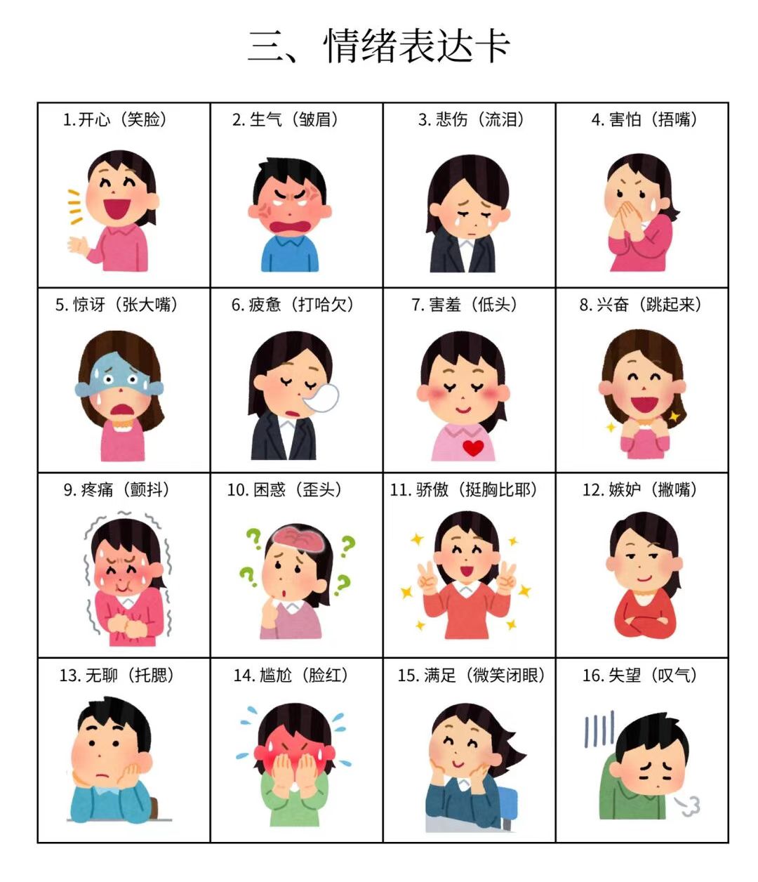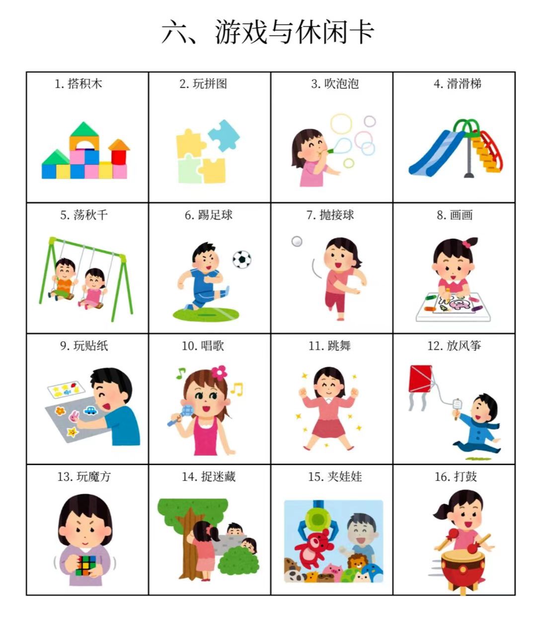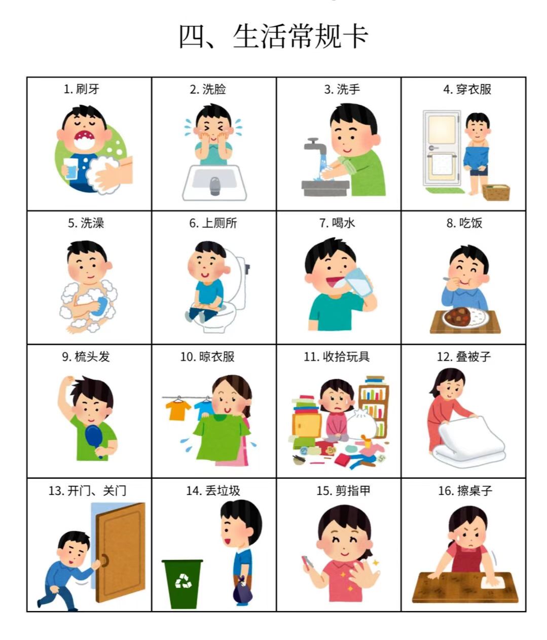 我们整理了15个大类的「图卡训练」,包括基础动作训练卡、社交互动卡、情绪表达卡、生活常规卡、课堂学习指令卡等多个类型,涉及各个方面。