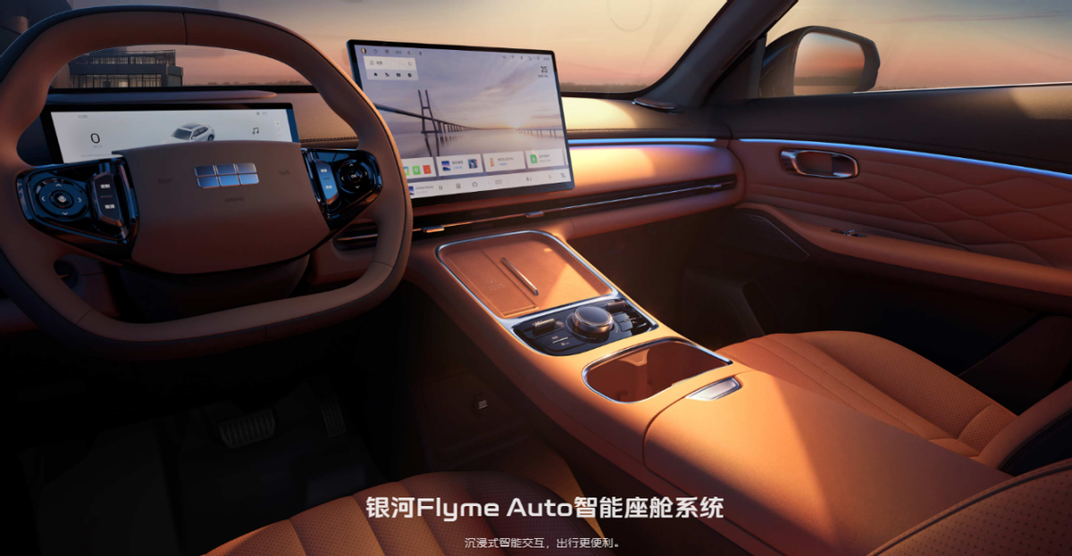智能配置方面,新车搭载千里浩瀚辅助驾驶H3方案,配备3毫米波雷达+11颗高清摄像头+12超声波雷达,支持高速NOA与城市NOA,包含智能汇入主路、压速变道、130km/h自动紧急避让(AES)等功能;泊车场景覆盖HPA记忆泊车、遥控泊车,新手也能轻松驾驭。座舱搭载7nm制程“龍鹰一号”芯片(16G+128G内存),配合15.4英寸2.5K中控大屏,流畅度拉满。银河Flyme Auto系统支持Flyme Link/Carlink/HiCar多品牌互联,定制版高德地图810版本实现沉浸式导航,交互体验媲美高端智能机。
