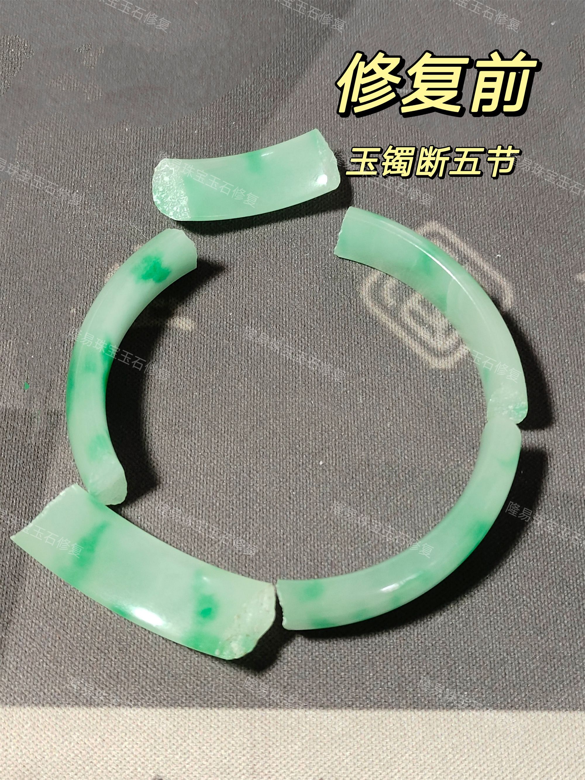 但是,如果玉手镯,摔碎特别多节,比如8节,9节+,一般就不是很建议修复了,这种修复后的手镯牢固度,肯定是没有断少节的修复效果牢固的哦。