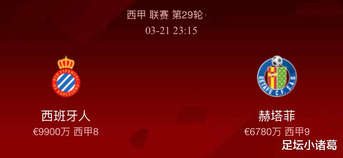 本赛季28轮联赛过后,赫塔菲以10胜5平13负的战绩排在西甲积分榜第9位,目前落后欧战区6分;值得一提的是西班牙人队最近的竞技状态可以用如日中天来形容,近6场比赛赢下了其中的4场,且这4场胜仗的对手中有三个是积分榜前5的球队,含金量非常足,以目前这种状态想获得一个欧战席位完全没有问题。