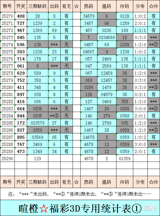 25290期:暄橙福彩3D综合条件