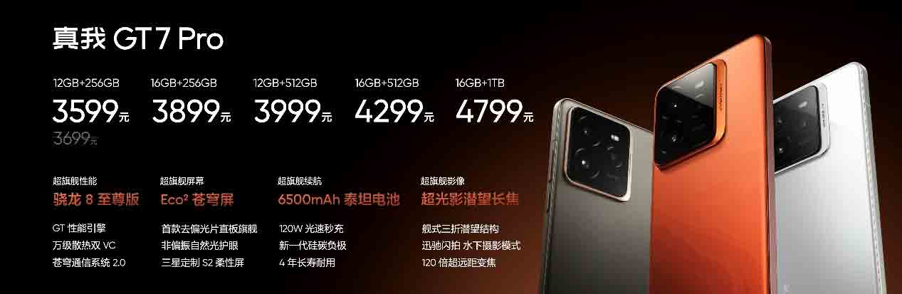 作为骁龙8至尊版旗舰质价比之王,真我GT7 Pro带来全面超越同档的产品力,价格也超越期待,具体售价如下: