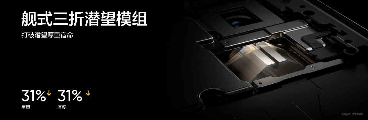与此同时,真我GT7 Pro采用领先行业的舰式三折射潜望模组设计,大幅减薄原本厚重的潜望结构,Deco凸起仅有3.48毫米,让轻薄潜望成为可能。
