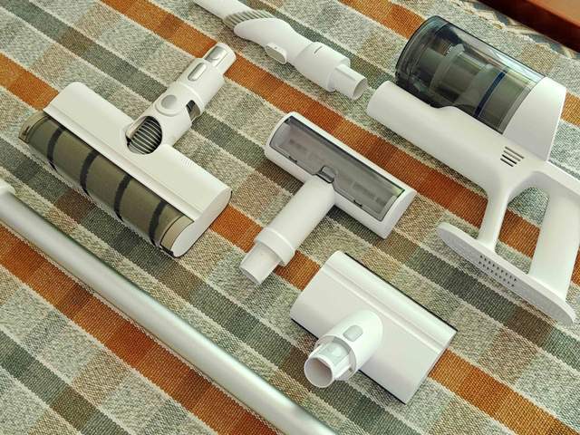 其他配件:遇到衣服、床面沾毛,只要用静电除毛刷轻轻推拉就能轻松除毛比,粘毛器省时 10 倍。;碰到低矮空间和缝隙,就换上扁口吸和软毛刷,180°智能躺平设计能把这些卫生死角打扫得干干净净。