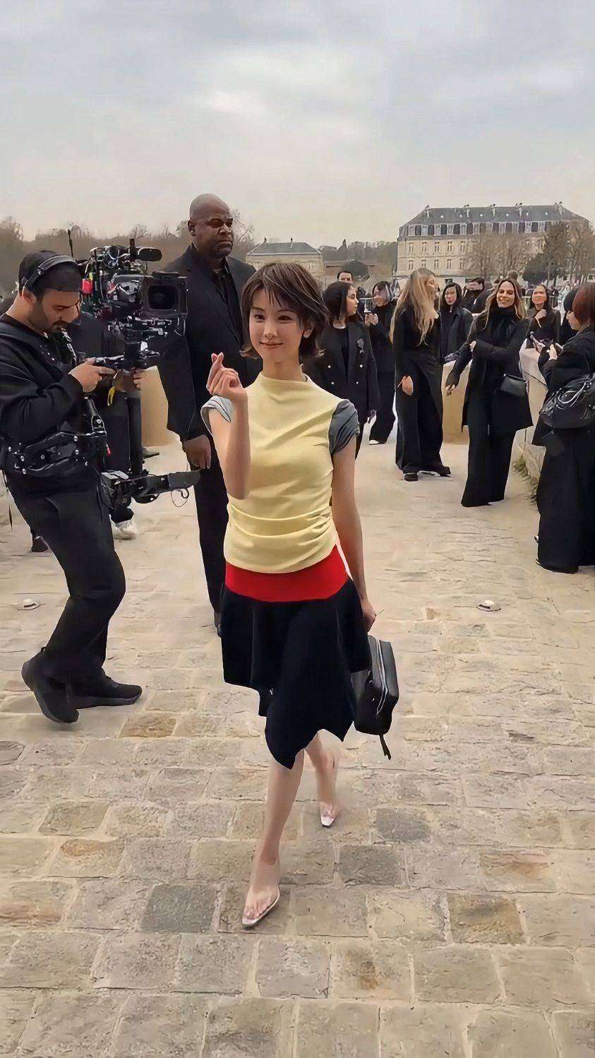 作为品牌大使在时装周亮相的陈都灵,则彻底打破了以往温柔清纯的校花形象。她以微微翘起的短发搭配高饱和度的撞色裙装,无论是在塞纳河畔还是秀场外,都掀起了一阵令人惊艳的灵动风暴。这头被赞俏皮灵动少年感十足的短发,是造型师团队从众多假发中精挑细选的秘密武器,其设计灵感源自法国女神的经典造型,不仅成功削弱了她身上的书卷气息,也为她注入了全新的活力与现代感。