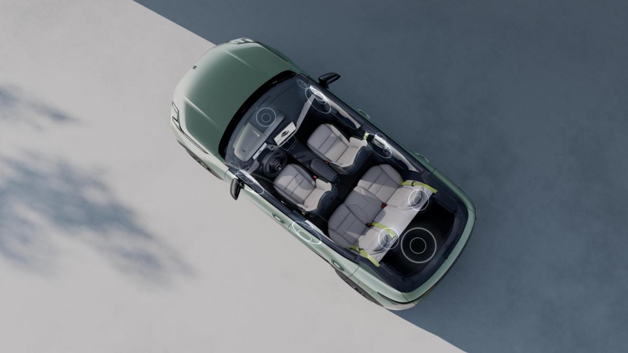 从布局来看,4个高音扬声器布置在A柱和后门顶部,可打造宽阔声场;5个中音扬声器分别位于仪表台中央、前门上方和后排顶棚,兼顾声场高度、声响稳定度与后环绕效果;前后门两侧下方的4个低音扬声器,搭配后备箱下方的定制密闭低音炮,让低音下沉更沉稳有力。同时,系统采用起步7.1级、更高至9.2点的声学布局,配合12通道独立延时矫正与同等级少有的主动三分屏技术,实现全车441个焦点可调,让车内每个座位都能获得优质音质体验。扬声器网罩选用高刚性金属拉丝材质,相比塑料网罩更薄且开口率超45%,有效降低声音传播阻力,提升音质通透性。